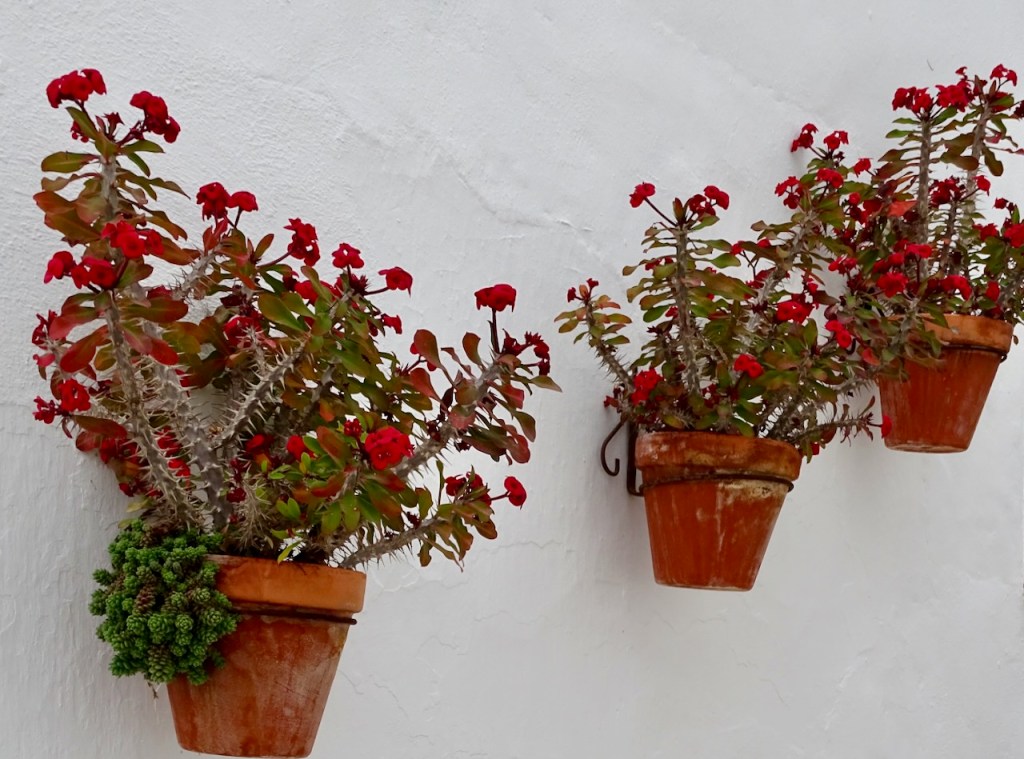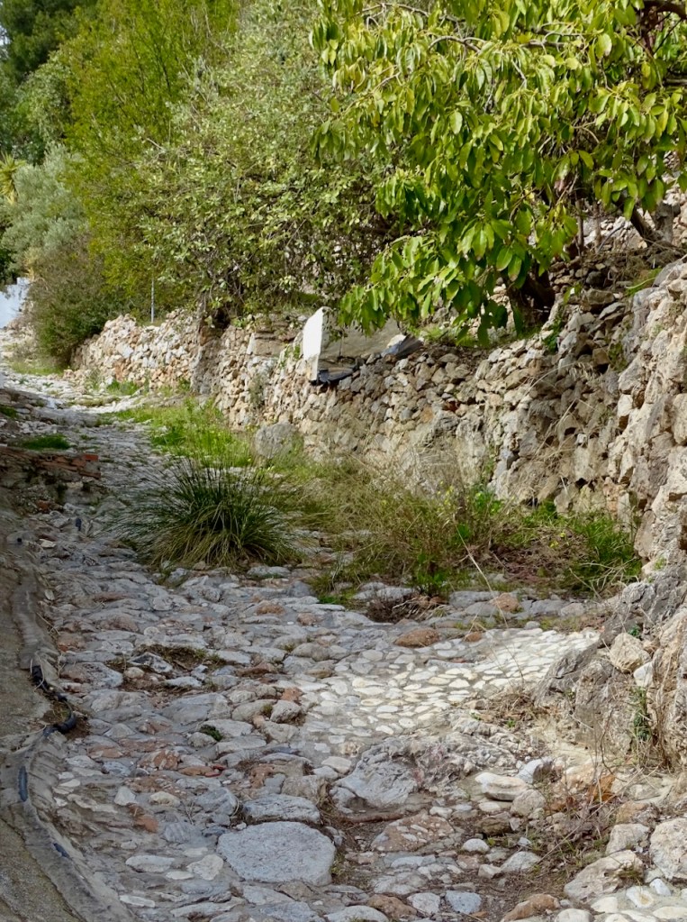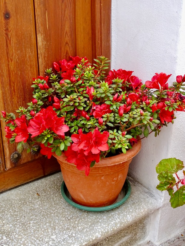 Kamera auttaa selviämään noususta. Tulee niin paljon houkuttelevia pysähtymiskohteita. Kapeat kadut, valkoiset talot ja runsaat kukkaistutukset ovat ne, miksi kylää pidetään kauneimpana. Nämä kuvat ovat maaliskuun alusta, kuinkahan paljon värikkäämpiä kukat ovat jo vähän myöhemmin?