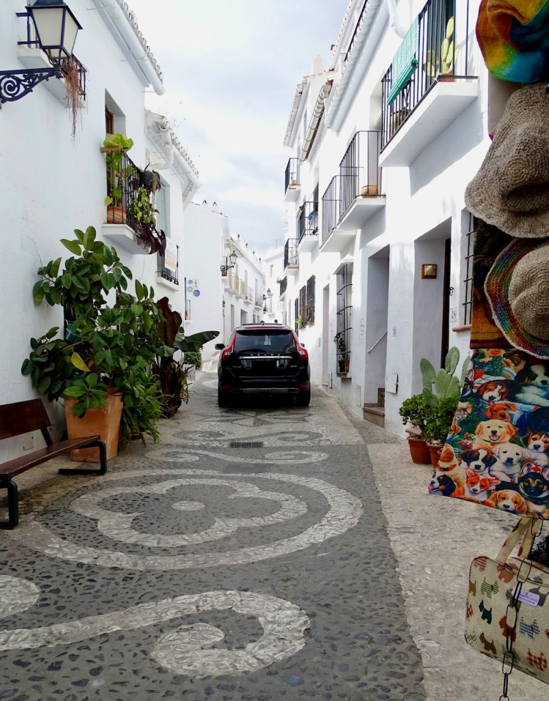 Andalusiassa on tosi paljon näitä valkoisia kyliä. Olen juuri nyt täällä, ja nyt maaliskuussa alkaa olla jo kukkia ja vihreääkin kaikkialla, joten uskon, että saamme nauttia lisää vielä useastakin valkoisesta kylästä. Kyllä mekin joskus olemme tuollaisille kaduille eksyneet, mutta aikamoinen haaste se suomalaisella farmarivolvolla on. Eli vältetään, jos voidaan.