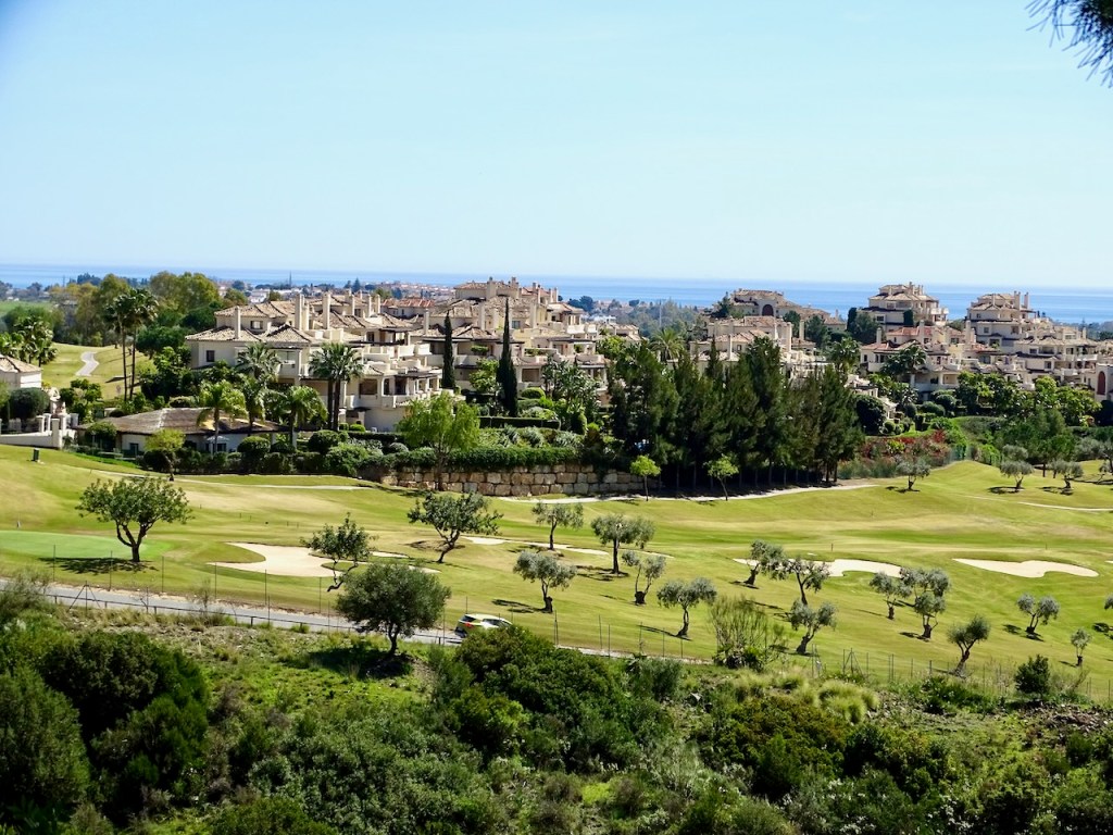 Tältä kohdalta näkyi myös golfkentälle, rinteellä oleville kauniille rakennuksille ja merelle. Benahavis on paikka, jossa on runsaasti tarjolla golfkenttiä, ainakin 12.