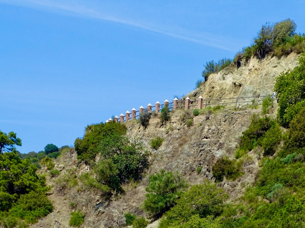 Metsän varjossa käveltyämme tulimme näköalapaikalle, jolta näkyi vuorten välissä oleva Benahavisin kylä ja kameralla zoomaten myös Ermita, jonka viereen olimme parkkeeranneet auton.