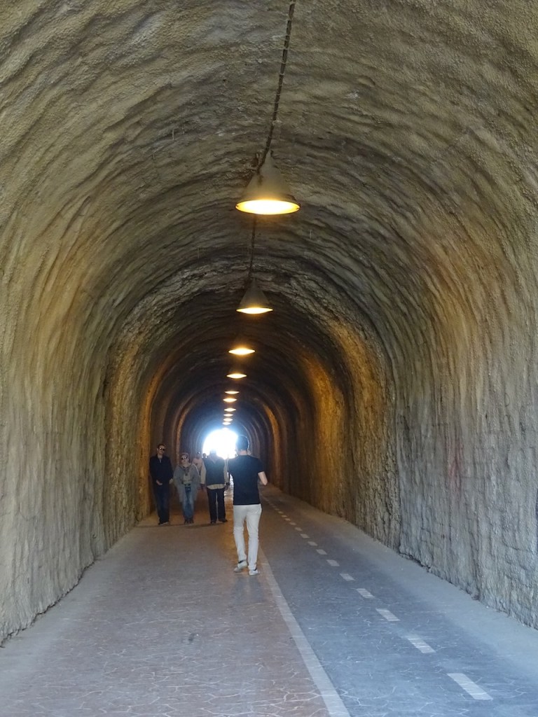Kalliolta pääsee takaisin rannan tasalle tunnelia pitkin. Voi myös nousta ylös ja katsella rantaa sieltä.