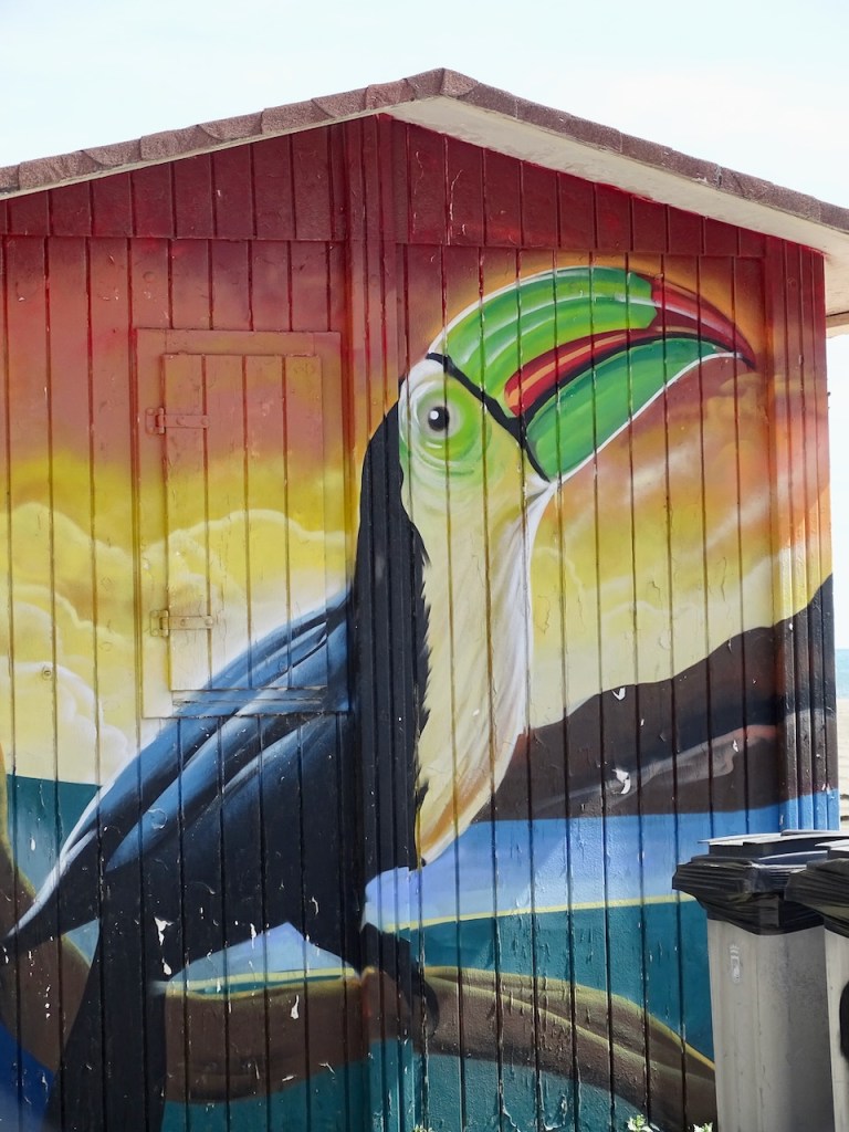 Mutta ei se mitään, nähtävää riitti muutakin kuin maisemia. Neitsyt Maria kukkineen ja junaa esittävä muraali.