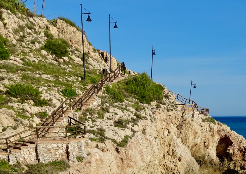 Tuo reitin helppous tosiaankin on hyvä piirre. Ajattelimme, että monet voisivat tykätä vaikka kävellä Palon rannoille asti, syödä siellä savustetun kala-aterian ja sitten tulla bussilla takaisin. Tai vain käydä siellä Rincon de la Victorian päässä, missä ovat ne kalliot ja portaat ja ihanat näköalat. Tuo bussijuttu antaa joustoa kävelyyn.