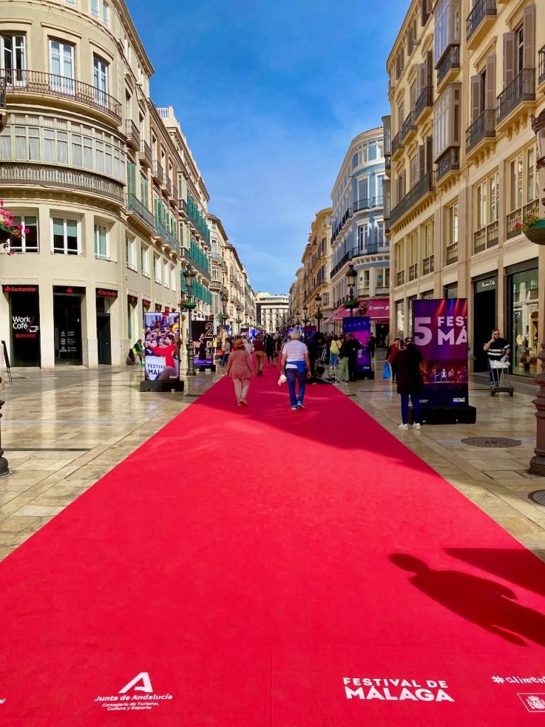 Malagan keskustasta on helppo suunnistaa Malaquetan rannalle. Calle Lariosta ei kylläkään oikein koskaan voi ohittaa vain reippaasti ohi kävelemällä. Siellä on aina jotain näyttävää, kun kaupungissa jotain tapahtuu. Tällä kertaa alkoivat Malagan elokuvafestivaalit ja punainen matto kattoi koko kadun.