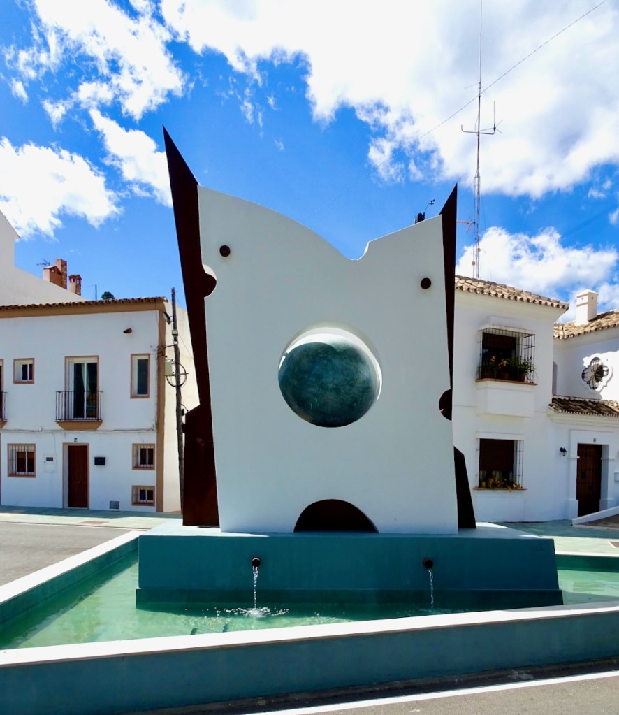 Olimme etukäteen katsoneet, että parkkipaikka löytyisi Calle Calvariolta. Kyllä, oli hyvä lähtökohta kävelyillemme. Sieltä oli jo hyvät näkymät kylään ja aukion penkillä avasimme eväsrepun ja katselimme hetken ympärillemme. Aukiolla on myös Fuente la Esfera, yksi kylän suihkukähteistä.