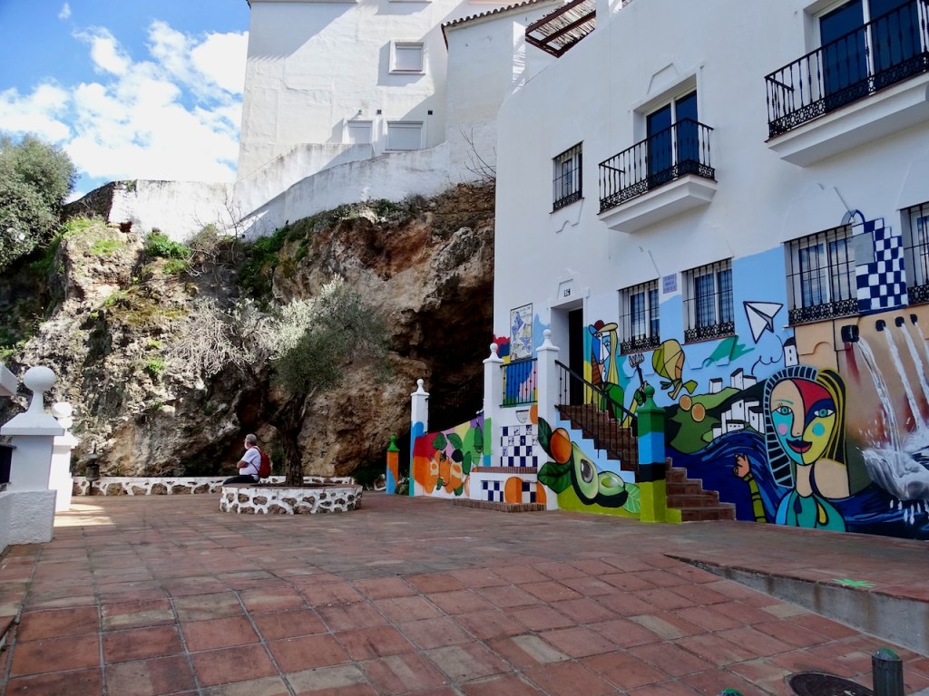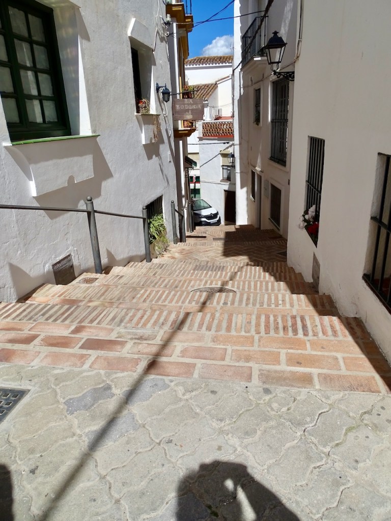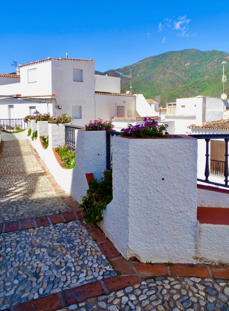 Kävelimme kaupungin läpi seuraavalle näköalatasanteelle. Kylä oli jälleen kaunis valkoinen kylä, kapeita katuja, kaakelein koristeltuja portaita ja kukkia tasanteilla. Autoja näkyi myös, vaikka katujen kapeuden takia se vaikutti jo ihmeeltä. Vastaantulevaa autoa sai väistää jo oven koloon.