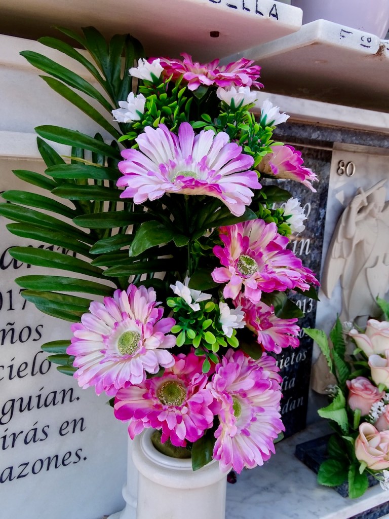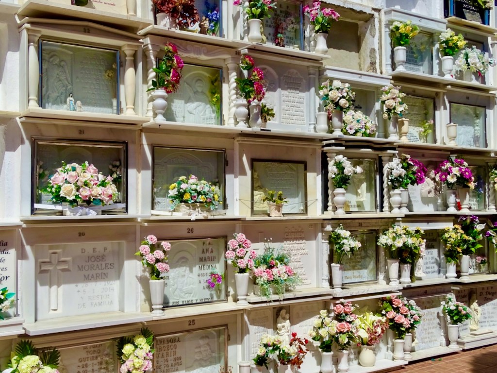 Espanjalaiset hautausmaat valkoisine muureineen ja kukkineen ovat aina kauniita ja mielenkiintoisia.
