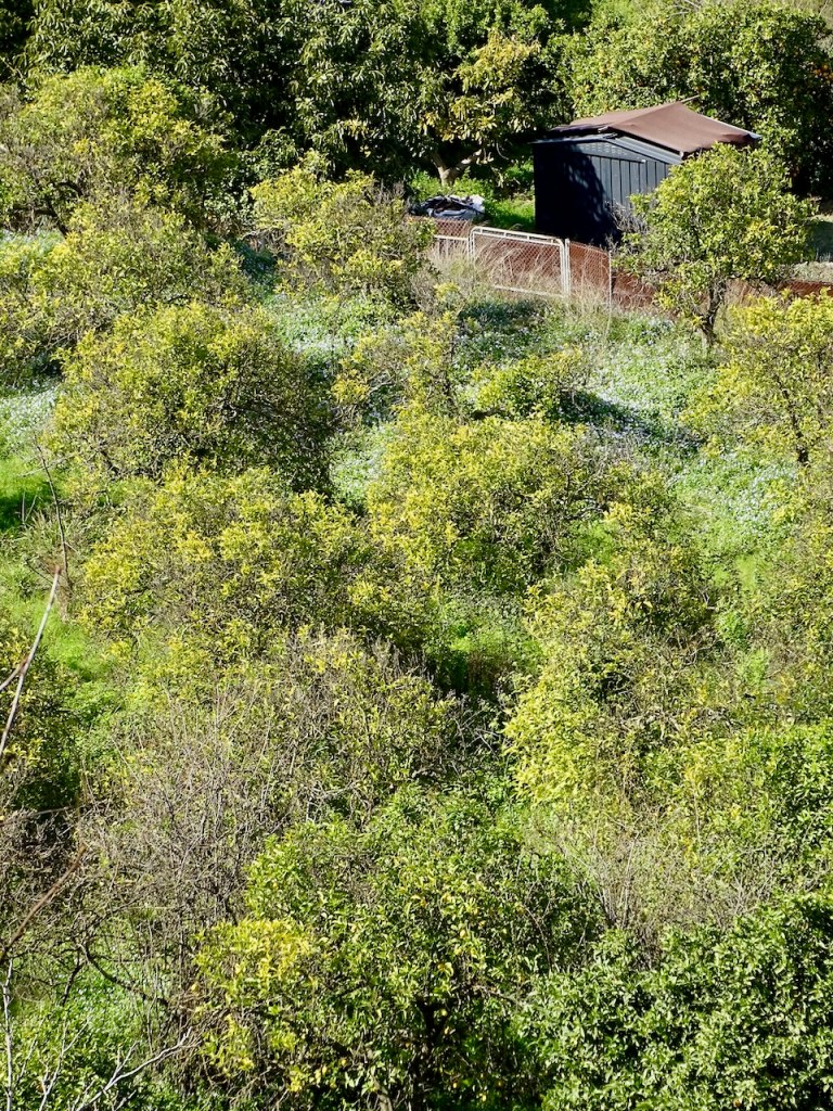 Näkymät alas viereisille puutarhoille olivat aika täynnä hedelmäpuita.