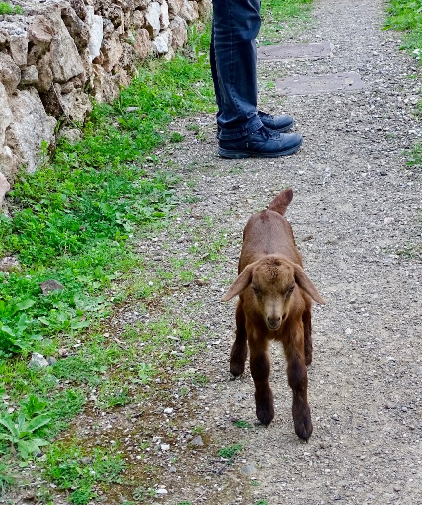 Enkä sitä tällaisen polun varrelta keräisi, koiranulkoiluttajat jo estävät. Saati sitten tällainen vuohilauma, joka yhtäkkiä seisoi edessämme. Huh! Miten nämä ohitetaan? Laumalla oli paimen, joka vain kehotti menemään ohi. Ja niin sitten menimme.