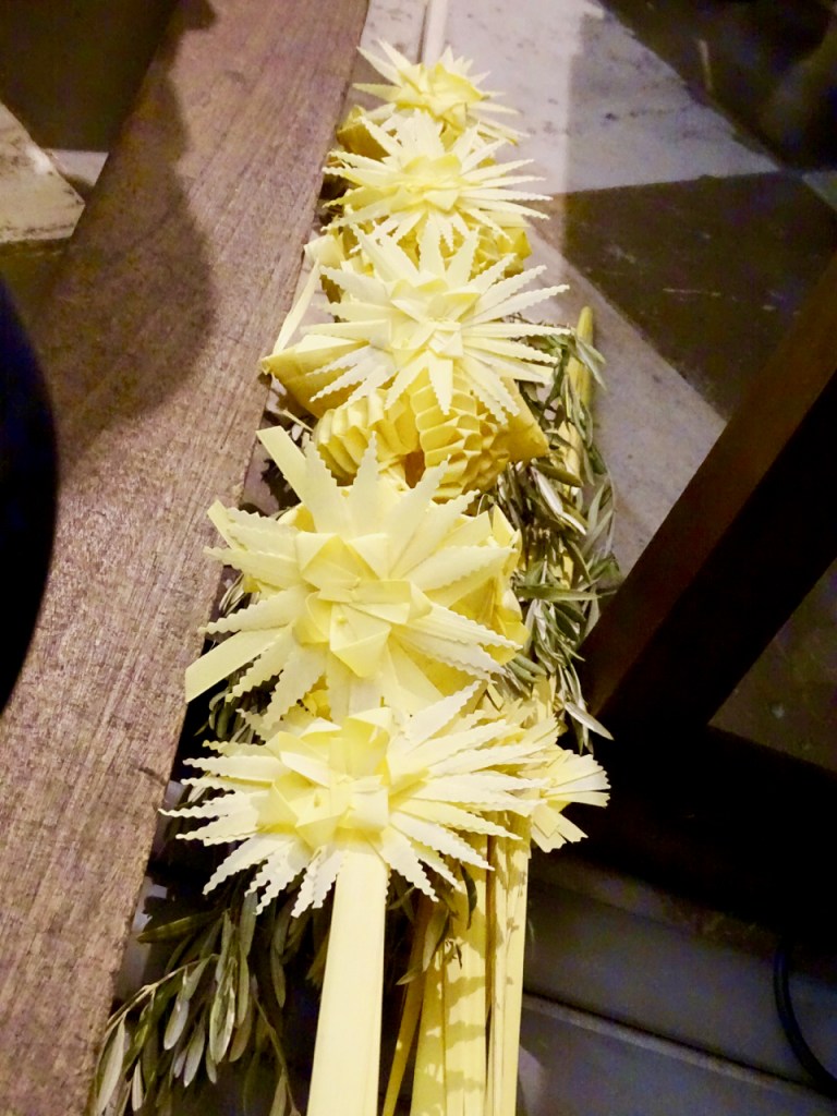 Pääsiäisviikko alkaa palmusunnuntaista, Domingo de Ramos, jolloin messussa siunataan palmunoksat. Kun Jeesus ratsasti Jerusalemiin, kansa huusi hoosiannaa kuninkaalle ja heilutteli palmunoksia. Tuskin ne kuitenkaan olivat ihan samanlaisia kuin nämä pitkälle kehitellyt viritelmät espanjalaisista pääsiäiskoristeista. Ei varmaan mikään ihme, että näitä näkyy parvekkeilla koristeina vielä kesälläkin.