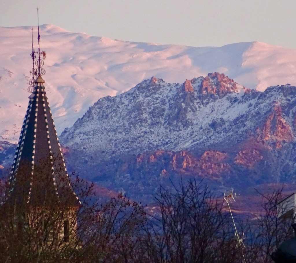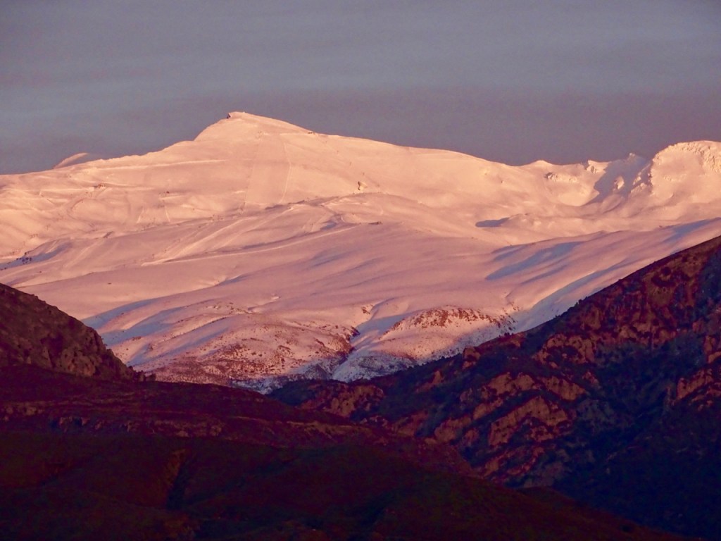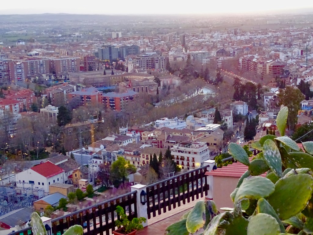 Pääsiäispäivän iltana jätimme hyvästejä sekä pääsiäisviikolle että Granadalle. Kiipesimme Alhambran ohi mäelle ja katselimme vaaleanpunaiseksi värjäytyvää Sierra Nevadaa.