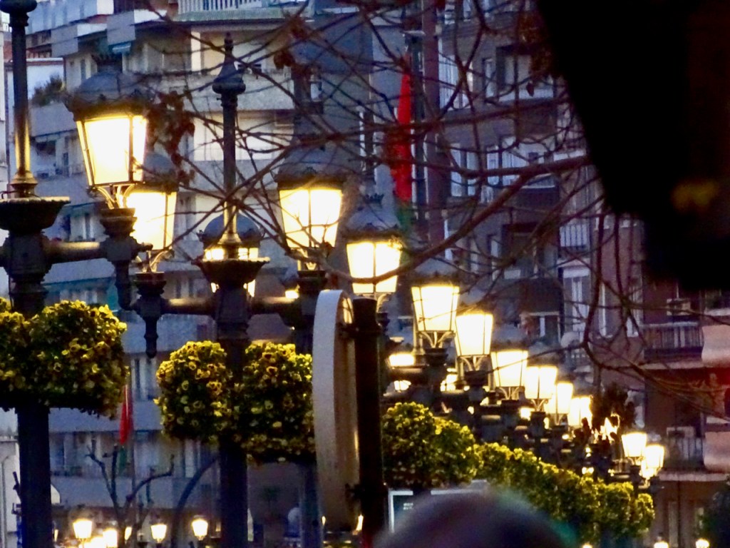 Jostain kaukaa kuului vielä orkesterin musiikkia sen verran, että aavistimme jossain vielä jonkun kulkueen menevän. Aurinko laski ja valot alkoivat syttyä.