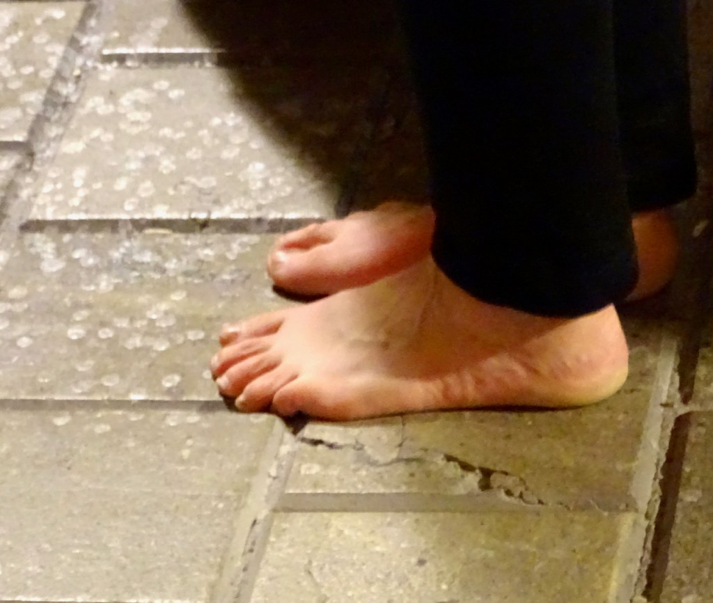Jotkut etenivät paljain jaloin. Valinta liittyy ilmeisesti asketismiin ja kärsimyksen kokemiseen. Siis sillä tavalla, että mitä enemmän kärsii, sitä kirkkaamman kruunun saa.