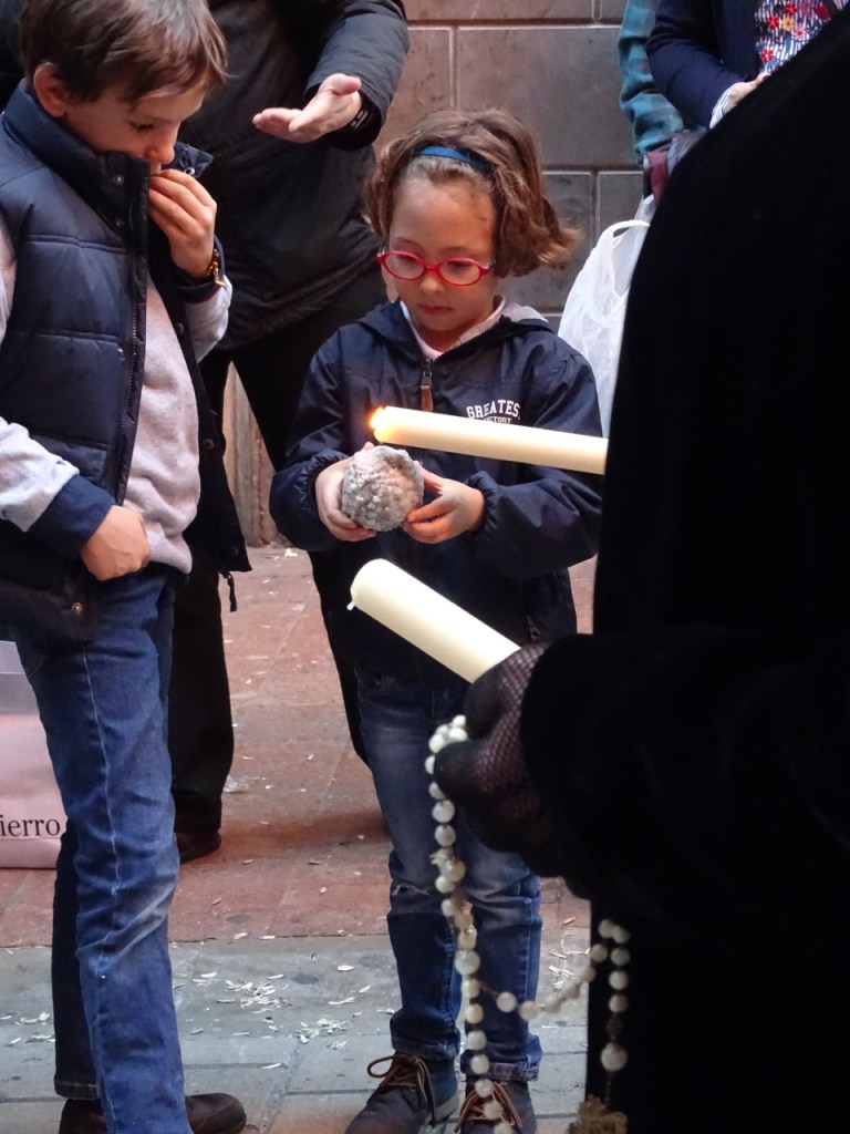 Ihmettelimme pitkään, minkä vuoksi lapset keräävät kynttilöistä tippuvaa talia isoksi palloksi. Kysyin yhdeltä naiselta, ja hän sanoi, että se on vain hupia, että aika kuluisi, kun tuntikaupalla katsoo kulkueiden ohimarssia.