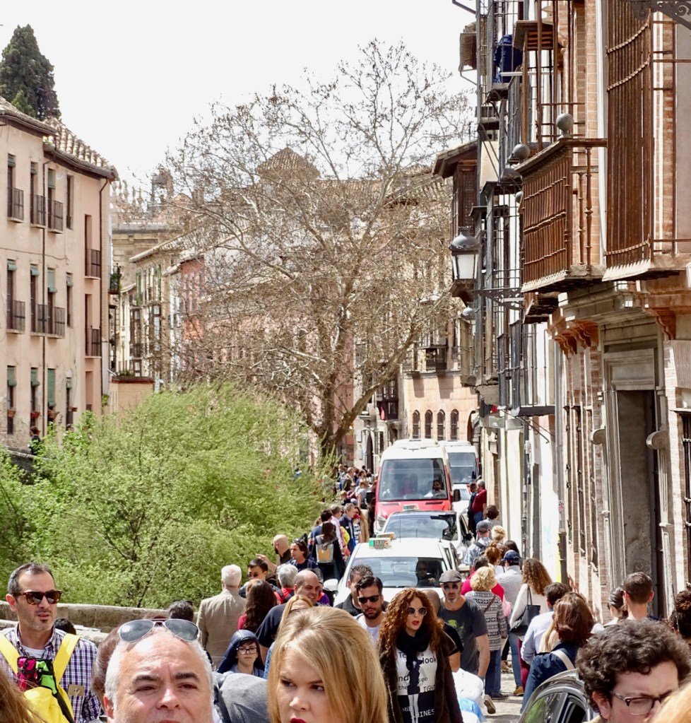 Granadan pääsiäisviikko oli tosiaankin sekä juhlallinen että kohtuullisen rauhallinen kokemus verrattuna niihin kaupunkeihin, joissa turisteja ja väkeä on vielä enemmän. Sevillasta olemme nähneet televisio-ohjelmia kulkueista massojen keskellä ja juuri tänään olimme Malagassa, jossa saimme vähän tarpeeksemme tungoksista. Muutama vuosi sitten (ennen koronaa) olimme myös Malagassa, eikä tungos ollut ihan yhtä ahdistava kuin tänään, joten mietimme, onko jotain tässä muuttumassa. Granada säilyy meillä ihanana muistona.