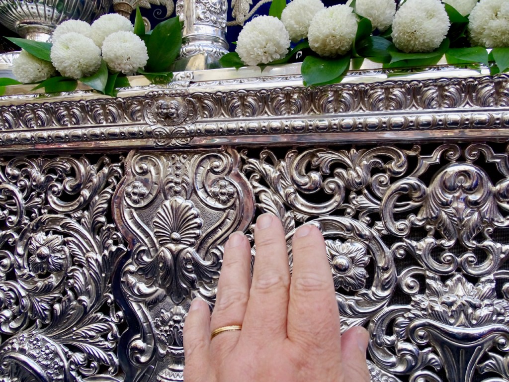 Moni kävi kevyesti koskettamassa Marian vaunua. En tiedä, miksi, ehkä siihen liittyy jokin rukouselementti. Päätin kokeilla itsekin, kun olin sopivasti lähellä.
