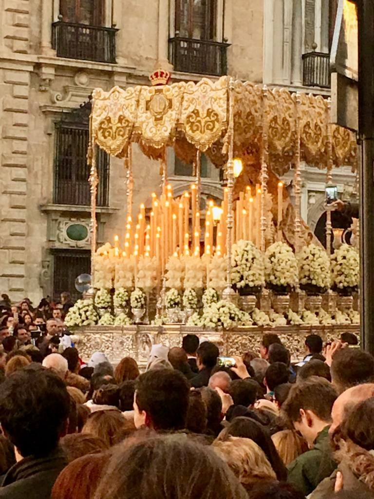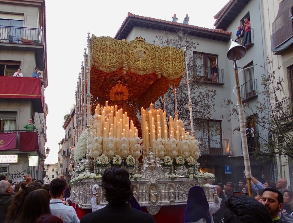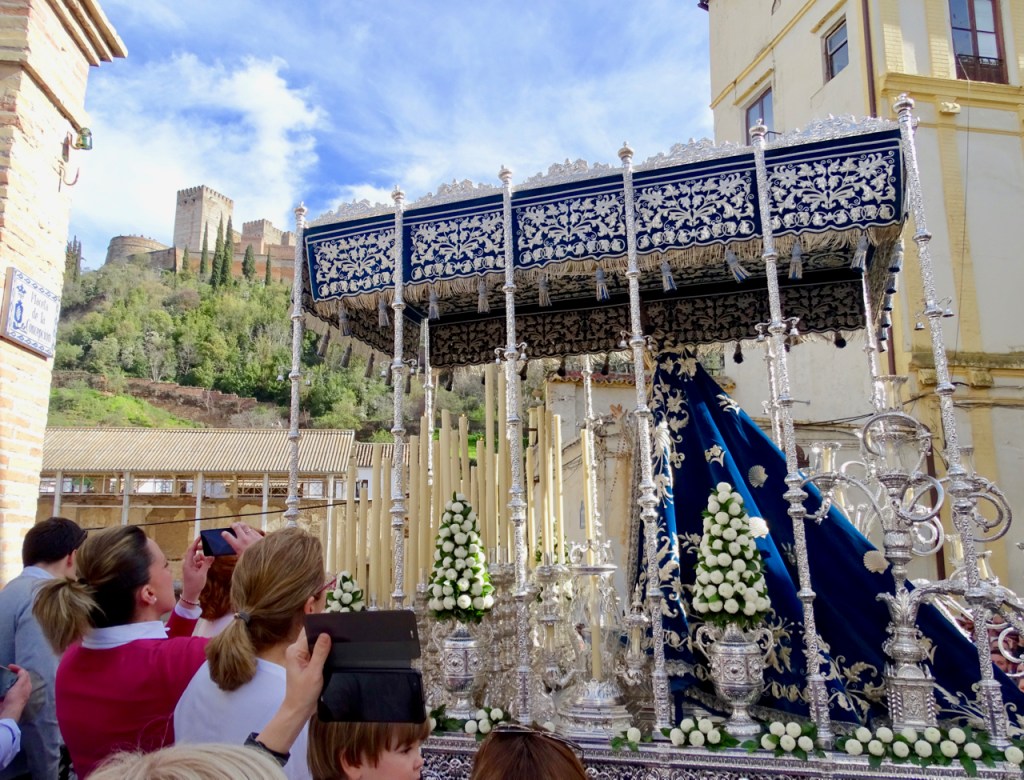Pääsiäisviikko Granadassa on ikimuistettava. Tunnelma, kaikenlaiset pikkujutut, lapset, soittajat, koristellut lavetit ja patsaat – tällaisen kokeminen on harvinaista. Granada on ehkä kokemistamme pääsiäisviikoista kivoin. Olemme katselleet kulkueita aikaisemmin jo Marbellassa, Malagassa ja Tarragonassa. Kaikki ovat erilaisia. Marbellassa illat olivat tunnelmallisia, Malagan kulkueet ehdottomasti näyttävimpiä, joskin turistien tungos jonkin verran vie tunnelmaa. Tarragona Kataloniassa oli erilainen, kulkueet vaatimattomampia, niitä oli vähemmän ja kaikissa oli roomalaisia sotilaita.