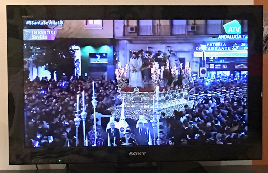 Eipä näitä mikään pakko olisi ollut iltakausia kadulla katsella. Televisiosta tuli koko viikon joka ilta ja yö kulkueita Sevillasta. Ihan selostettuina. Ihan kuin urheilukilpailuissa.