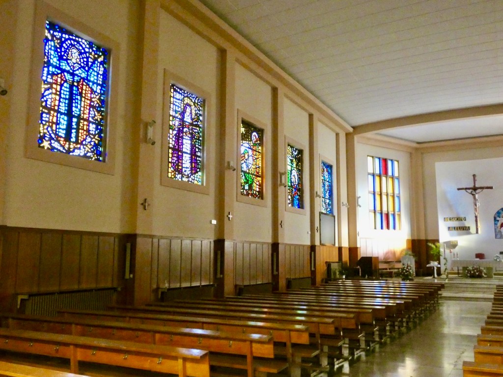 Ja näköalapaikan vieressä oli kirkko, joka oli auki. Kävimme katsomassa sisällä lasi-ikkunat.
