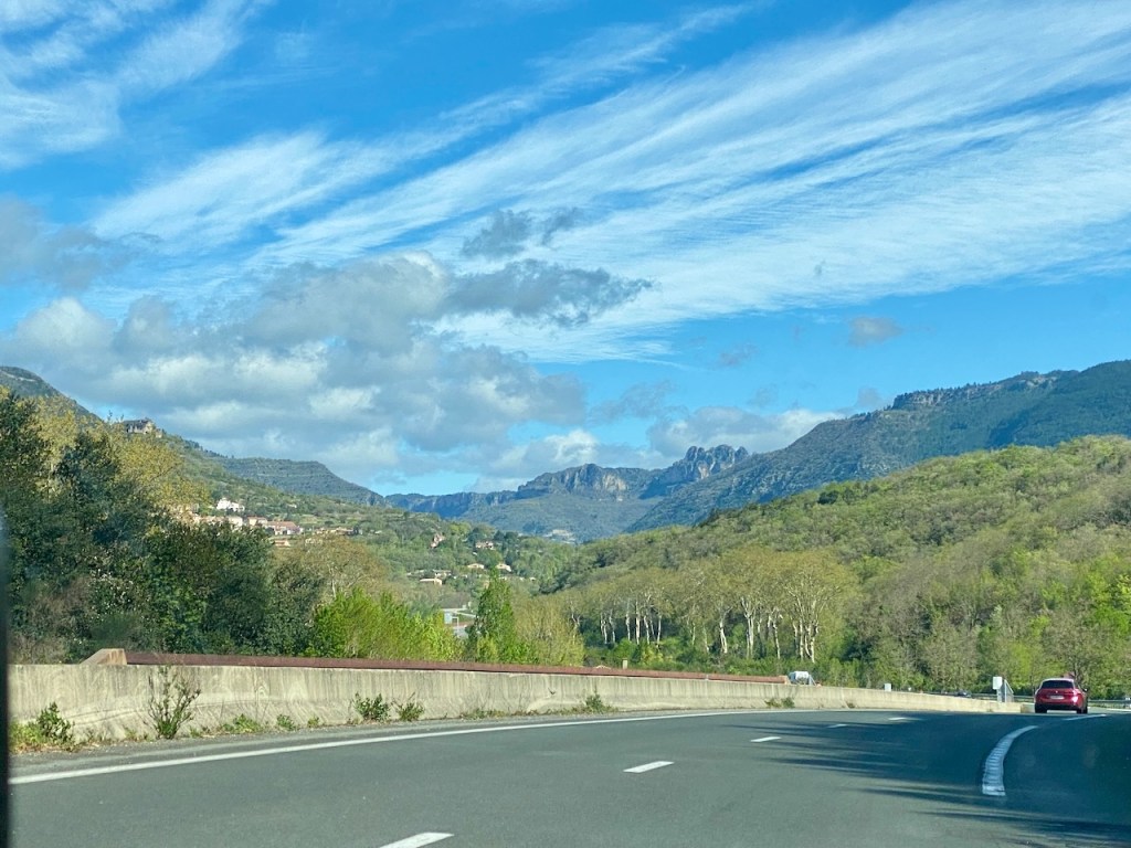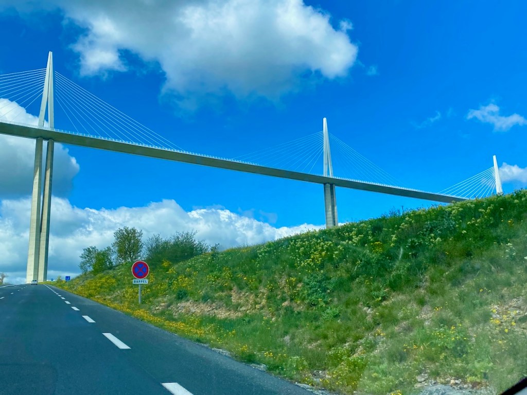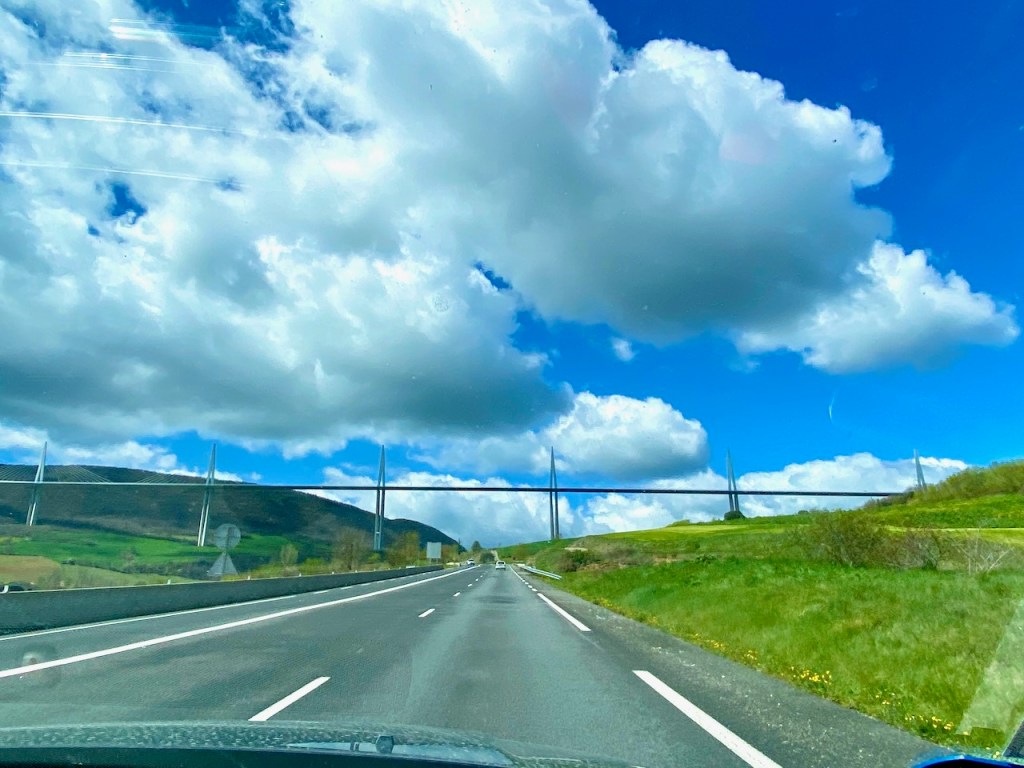 Näyttävin kohta tällä matkalla on kuuluisa Millaun silta Millaun laakson yli. Pari viime kertaa olemme ajaneet sillan yli moottoritietä, ja vaikka itse ajaminen ei paljon hetkauta, sillan vieressä on näköalapaikka, jolta voi käydä katselemassa siltaa ja maisemia.