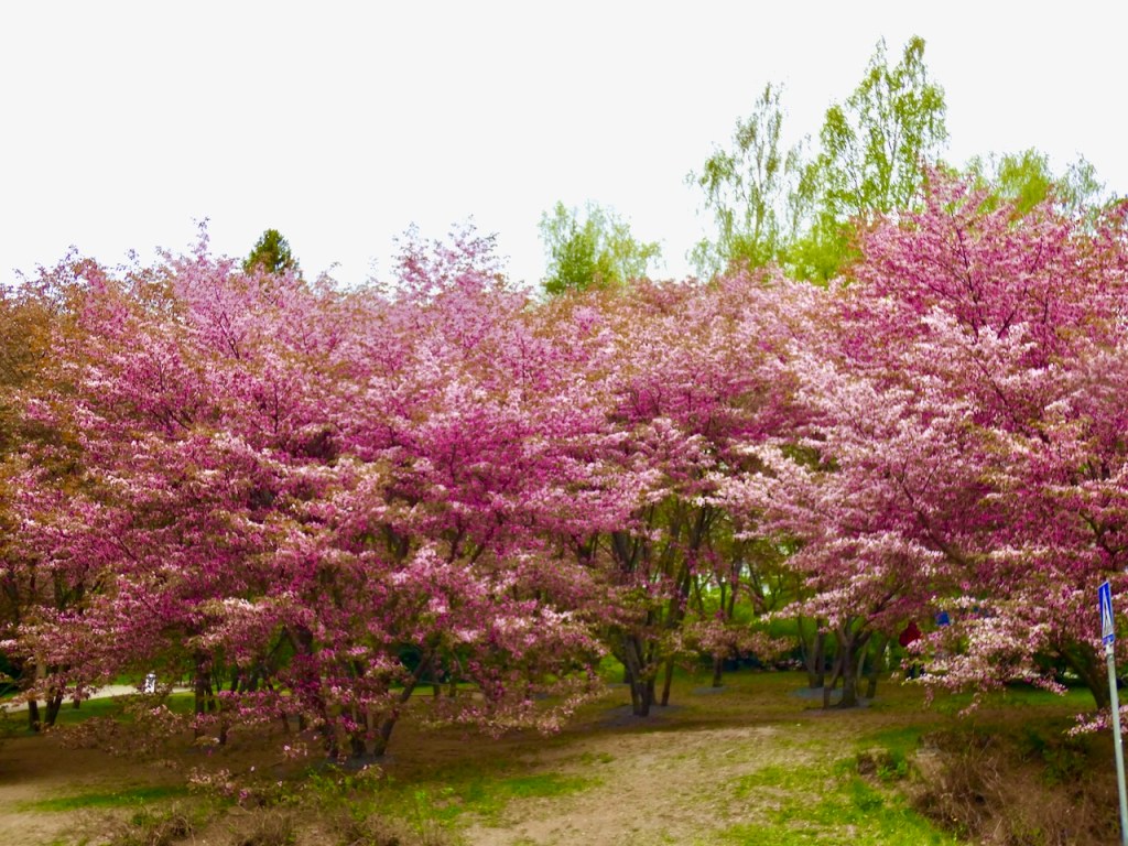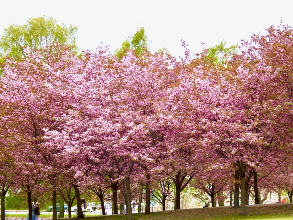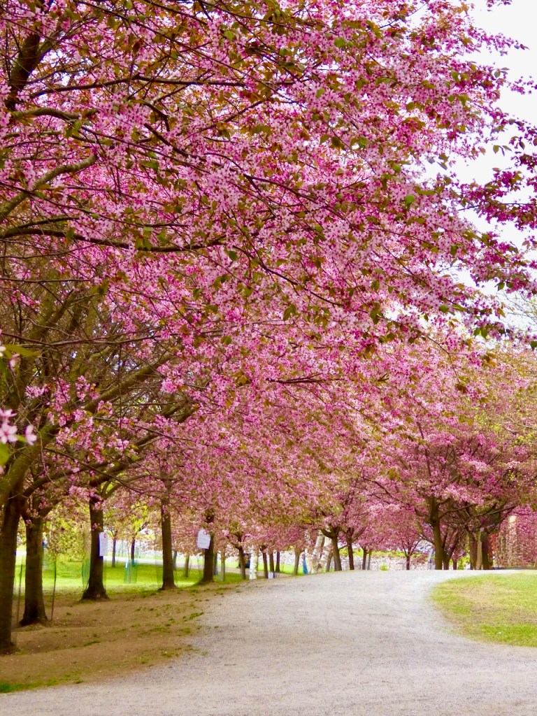 Tällä puolella vasta komeat isot kirsikkapuut ovatkin. Kannattaa käydä.