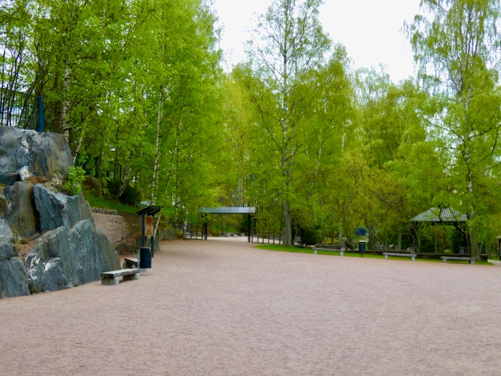 Kävelimme myös japanilaisen puutarhan puolelle. Kirsikkapuiston ja sen välissä on erityisesti lapsille sopiva leikkipaikka. Ei näkynyt ketään sielläkään.