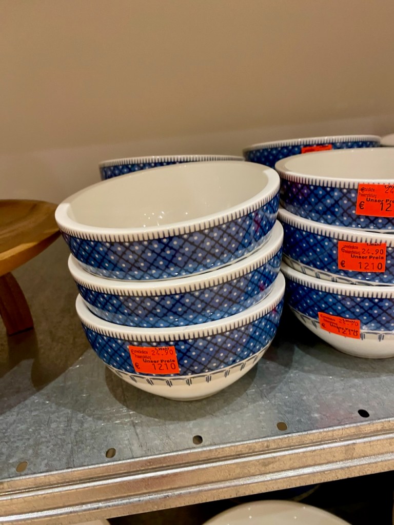 Baumwipfelpfadit ovat muodostuneet meille sellaisiksi suosikeiksi, että nimen kirjoittaminenkin alkaa jo sujua ilman tarkistelua 🙂 Niitä on siellä täällä Saksassa, Tsekissä ja Itävallassa. Ehkä jossain muuallakin. Emme mekään enää mitään astioita tarvitse, tekee vain mieli täydentää sitä suosikkiastiastoa ja nyt löysimme niin kivat juomalasit, että ei voinut sinne jättää. Olemme vuosien mittaan ostaneet sieltä omat käyttöastiamme ja neljän lapsemme perheet ovat saaneet myös paljon. Juuri nyt ensimmäiset lastenlapset ovat muuttamassa pois kotoaan, joten tarvetta edullisille laadukkaille ja kauniille astioille löytyy. Ja tuolta tosiaan löytyy usein alle puoleen hintaan suomalaisista hinnoista. Joskus erikoiseriä ihan huippuhalvalla.