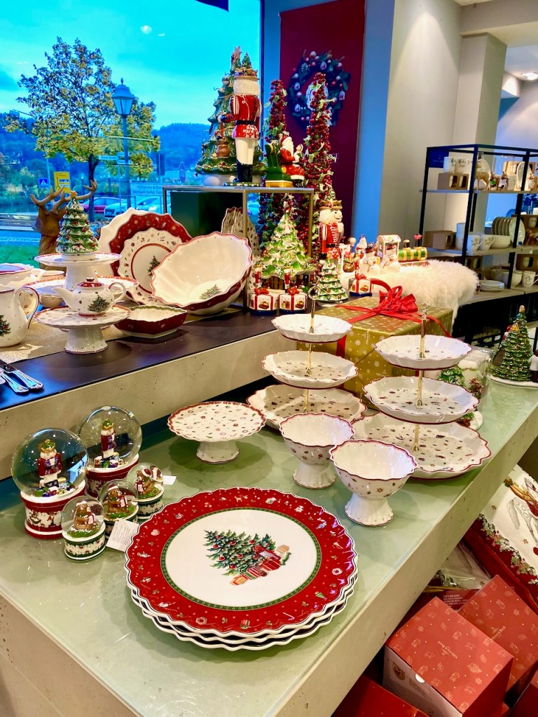 Baumwipfelpfadin jälkeen ajoimmekin sitten Mettlachin kylään ja saman tien Villeroy & Bochin outletmyymälään.