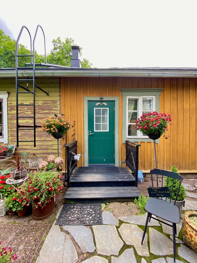 Seuraava kohteemme olikin jo melko lähellä Loviisaa, eli Kauppamuseon puutarha, joka sijaitsee samalla 2000 neliön tontilla Suomen pienimmän kauppamuseon kanssa. Puutarha ja kauppamuseo sopivat hyvin yhteen omistajapariskunnan Minna ja Kari Järvisen harrastusten ja elämäntavan kanssa. Vintageharrastus ja nostalgia näkyvät myös puutarhassa, jossa on perinteisiä kasveja ja koristeinakin yllättäviä esineitä. Todella yllättäviä!