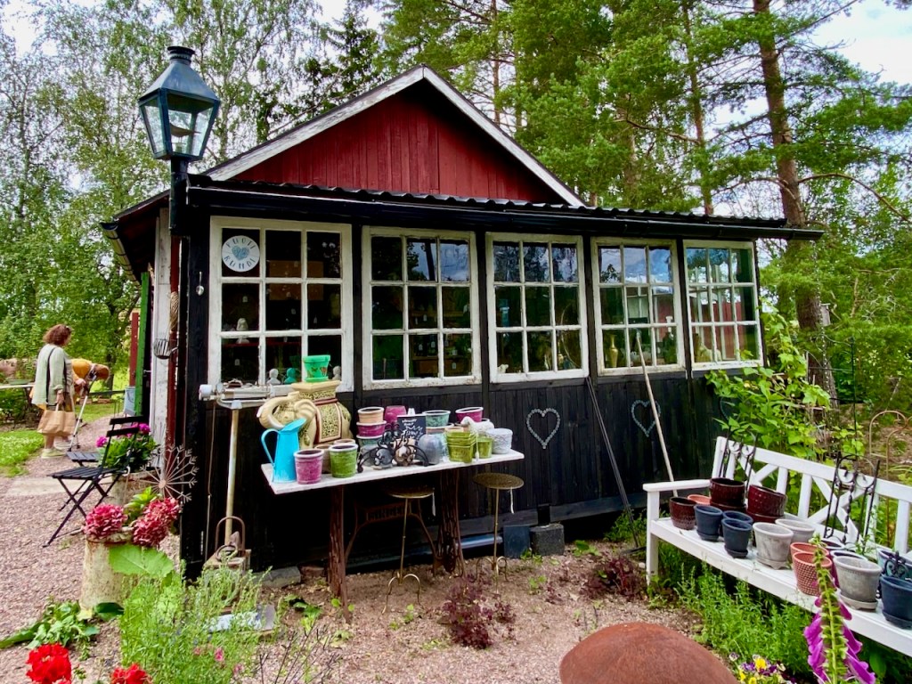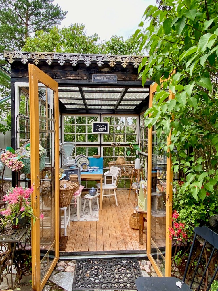 Ja etteivät yllätykset loppuisi, puutarhassa on myös sisustuspuoti.