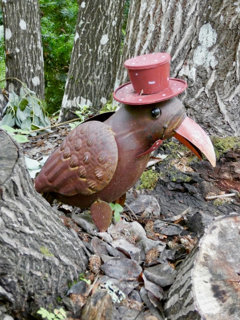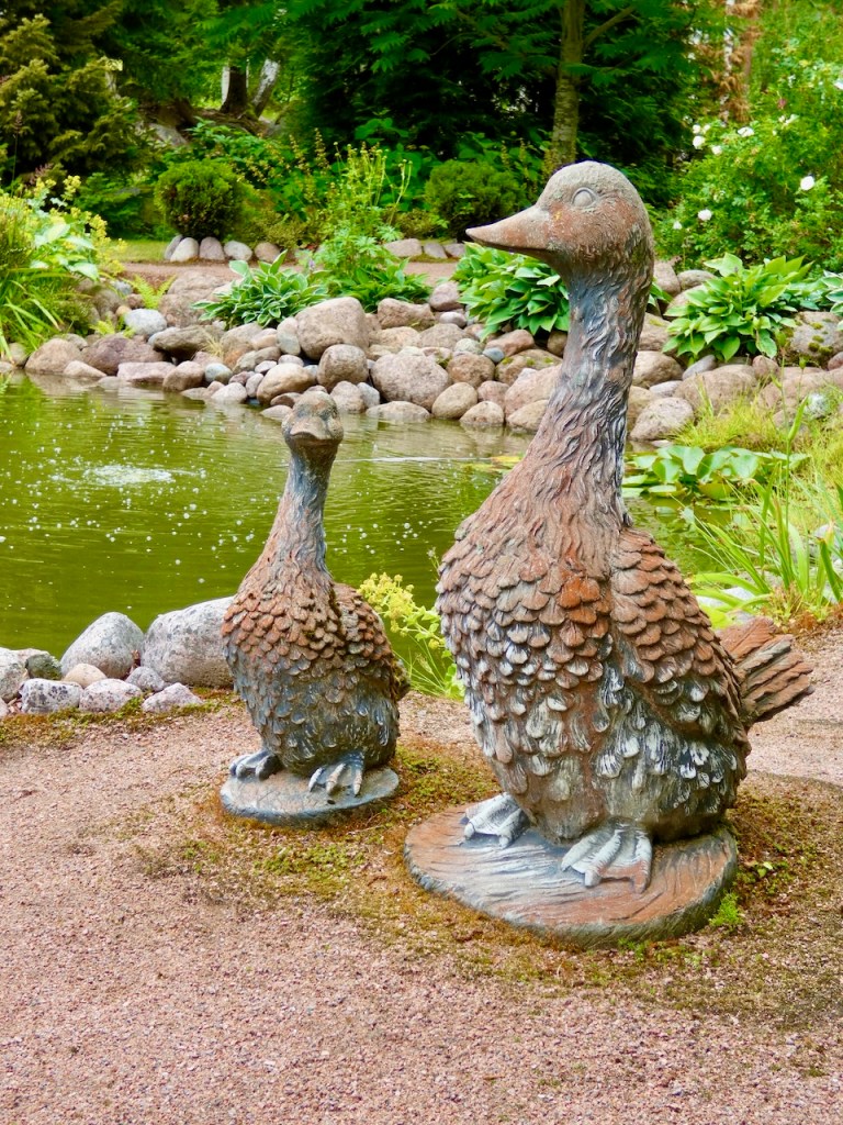 Puutarhassa viihtyisivät myös lapset, esimerkiksi kanalassa, mutta kuvittelisin, että jos minä olisin täällä lasten kanssa, he hihkuisivat innostuksesta nähdessään näitä mielikuvituksellisia eläimiä, koristeita ja asetelmia.