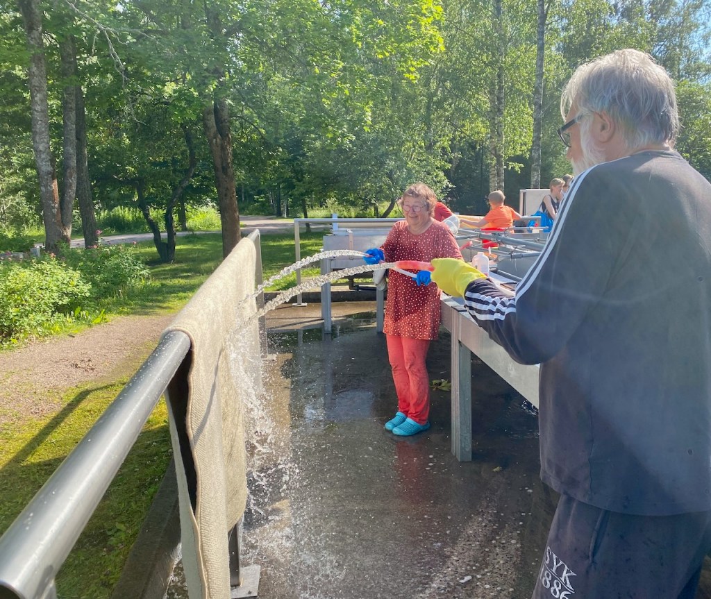 Ylästöntien kautta olimme pian Vantaan Jumbon lähellä ja mutkittelimme hetken Kartanonkosken maisemissa. Täältäkin tuli työelämämuistoja. Kohtasimme kerran täällä pyöräillessämme entisen opiskelijani. Nämä keskustelut ovat aina hienoja. Sain jälleen kerran hyvää palautetta työstäni. Tällainen historiaan palaaminen on aina hienoa. Juhankin vanhat oppilaat halaavat aina iloisina, kun kohdataan jossain. Ihmiset ja kohtaamiset ovat aina olleet meidän työtämme. Niitä jatketaan eläkkeelläkin.