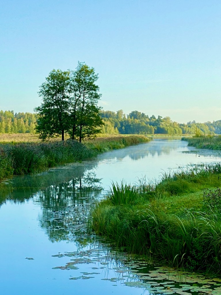 Aloitin Riihikalliosta, ja Tuusulanjärven etelärantaan on muutama kilometri. Tässä maisemassa eka pikapysähdys. Auringonnousu, aamu-usva ja peilityyni järvi aloittivat eläkeläisen juhlapäivän valoisasti ja kauniisti. Vaikka koulussa oli antoisaa, tämä rauha ja kauneus toivat mieleen iloa todella paljon.