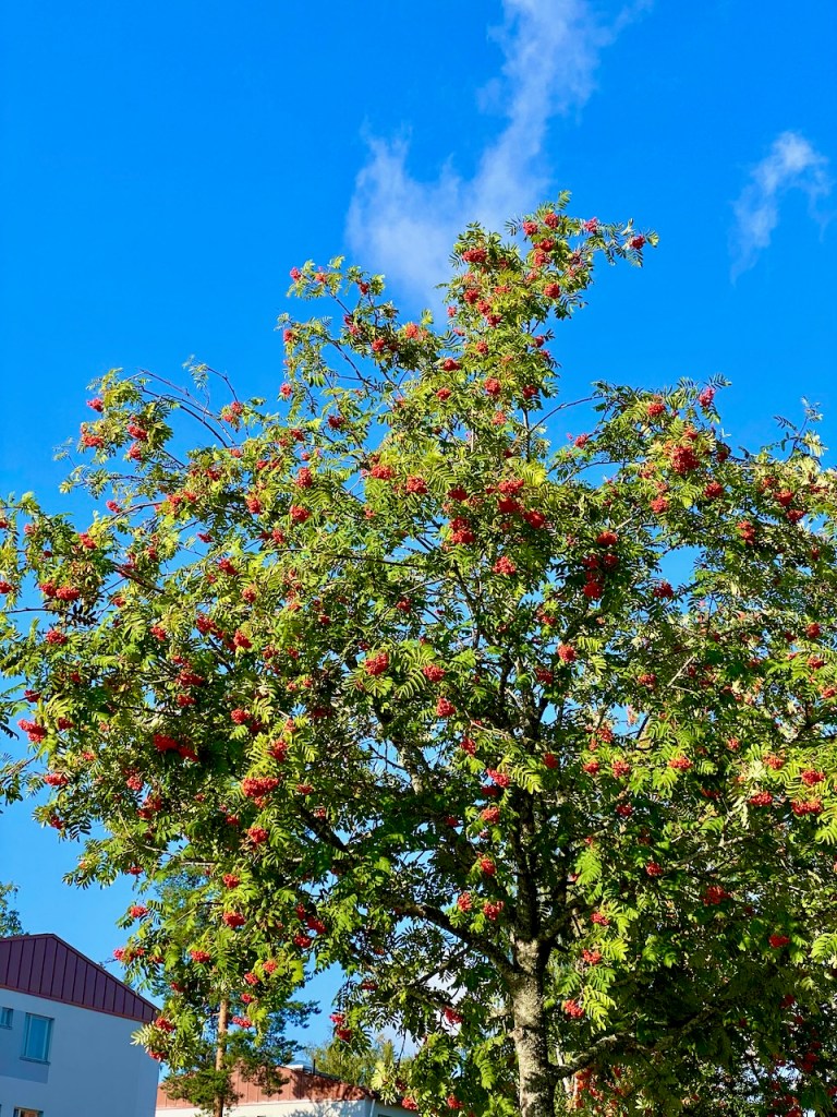 Vain 1t 45min oli kulunut, kun olin takaisin Riihikalliossa. Pihlajien alla piti pariksi sekunniksi pysähtyä ennen kuin käännyin kotipihalle. Kello oli puoli yhdeksän, aurinko oli noussut ja pyörän mittari näytti 33,3km. Hyvä alku!