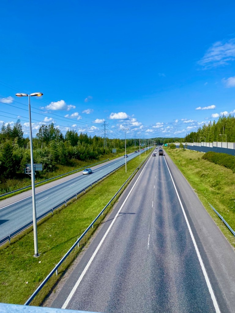 Käännyimme Kivistöstä Keimolan puolelle Hämeenlinnan moottoritien ylitse ajaen.