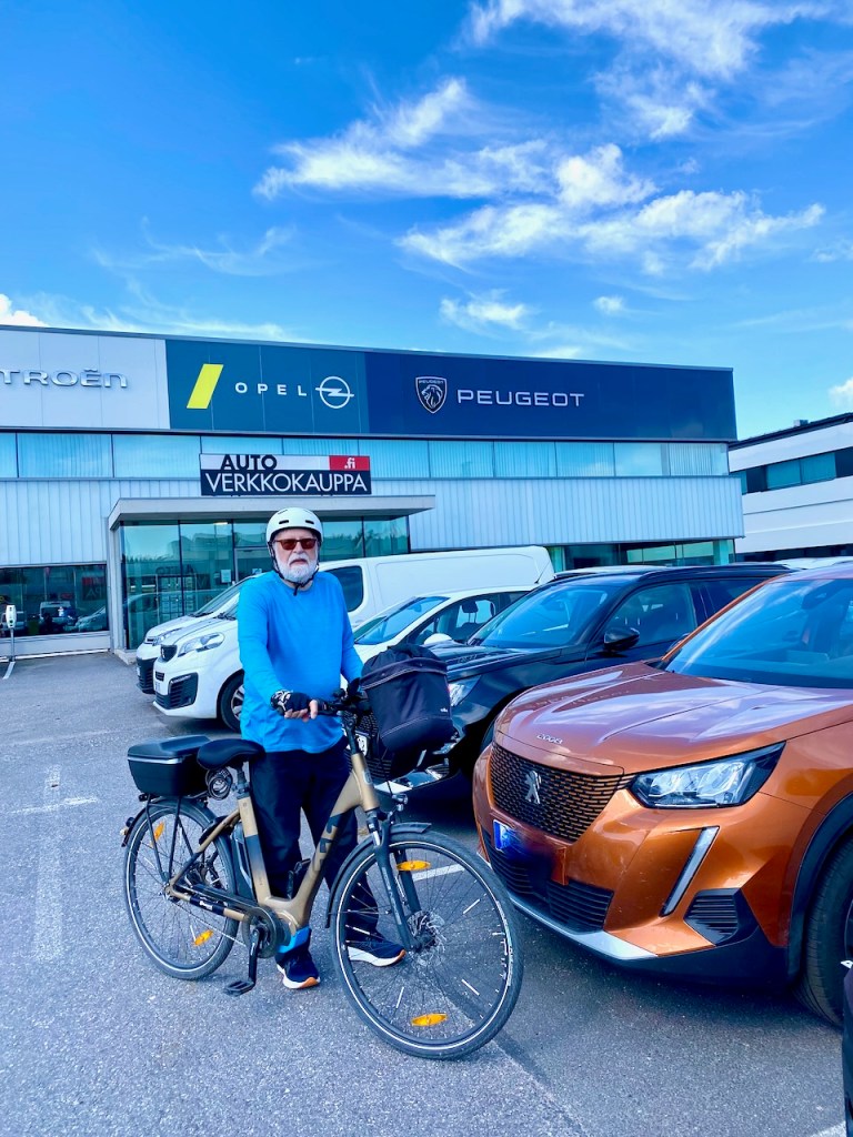 Tässä on yksi niitä isoja muutoksia, joita eläkevuosinamme on tullut vastaan. Sähköauto. Kaikkea tulee koko ajan. Lääkärien etävastaanotot, sairauksien ja reseptien hoitaminen Omakannassa ja Omaolossa, HSL-matkalippusovellukset kännykässä, Netflixit yms telkkarissa, äänikirjat, iWatch-kellot jne. Onneksi meillä on 13 lastenlasta ja aina joku ehtii mummia ja taataa neuvomaan. Ja onneksi meille oli jäänyt hyvä tausta kaikenlaiselle ICT-osaamiselle jo työelämässä. Se syntyi hyvin siitä, että vuonna 1991 Juha otti neljän kuukauden opintovapaan ja kävi ATK-tukihenkilökurssin, ja minulle yksi osaava opiskelijani opetti yksityisesti, miten tietokonetta käytetään. Seuraavan kakkosgraduni osasin kirjoittaa jo tietokoneen tekstinkäsittelyohjelmalla.