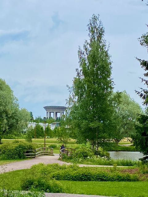 Ensimmäisenä koronavuonna 2020 valitsimme aktiviteetiksemme kierrellä Vantaata tutuksi pyöräillen ja silloin kävimme täälläkin. Juttelimme silloin pitkään tornin juurella kanssamme samantapaisissa fiiliksissä olleen eläkeläismiehen kanssa. Hän oli ekspertti paikkakunnissa ja historiassa, ja kertoi myös elämästään, viime vuosistaan omaishoitajana. Eläkeläisinä olemme yhä useammin kohdanneet ihmisiä ja ystäviä, joilla tämäntapaiset tilanteet ovat tulleet ajankohtaisiksi. Sairaudet, leikkaukset, omaisten sairaudet, yksinäisyys. Me olemme toistaiseksi säästyneet kaikelta tältä. Kunpa muistaisimme olla siitä vielä iloisia ja kiitollisia joka päivä.