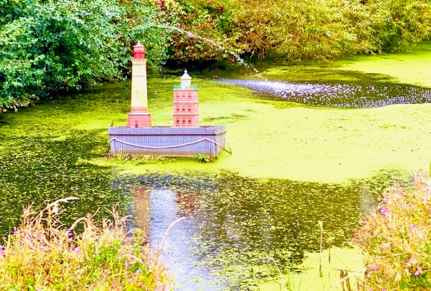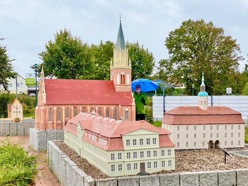 Iltapäivällä meidät saavutti sade, mutta siitä huolimatta halusimme nähdä Kalkhorstin miniatyyrirakennelmien (Minimare Entdeckerpark) alueen eli huvipuiston. Olimme sateenvarjoinemme ainoat vierailijat, vaikka paikalla on tosi paljon nähtävää ja erityisesti lapsille monenlaisia leikki- ja pelipaikkoja. Ystävällinen virkailija sääli meitä ja otti meiltä vain puolet lipun hinnasta. Hauskaa. Maksoimme 4,50€.