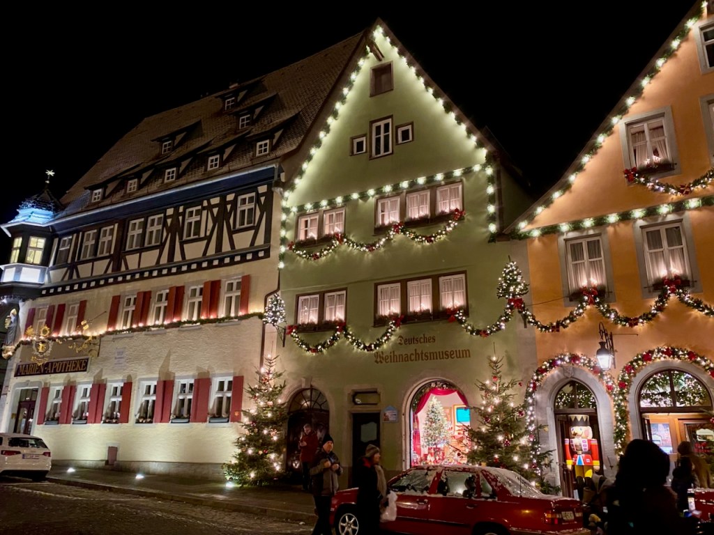 Käthe Wohlfahrtin myymälä ja viereinen Weihnachtsmuseum (Joulumuseo) ovat Rothenburg ob der Tauberin erityisimpiä päänähtävyyksiä koko vuoden, eli täällä voi aivan hyvin pistäytyä joulumuseossa myös kesällä. Ja kannattaa.