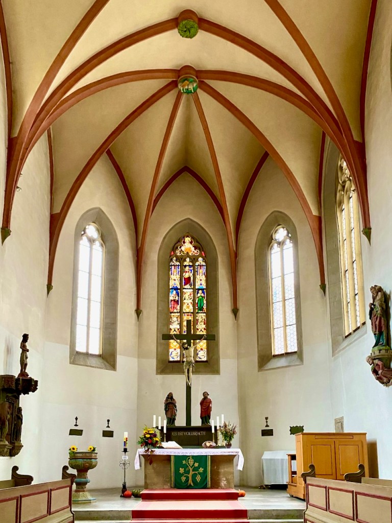 Iltakävelyllämme olin ottanut tunnelmallisen valoisan kuvan Pyhän Jaakobin kookkaasta kirkosta. Nyt sinne pääsi sisällekin. Pääsymaksulla. Oli kyllä vähintään yhtä komea sisältä kuin ulkoa.