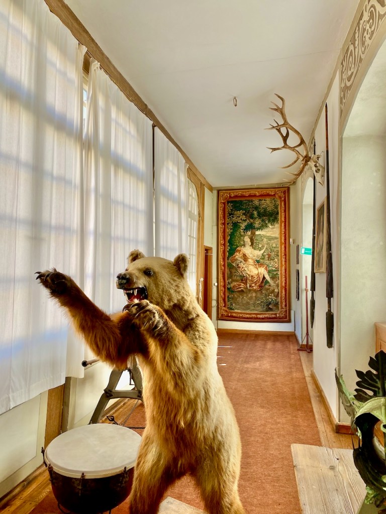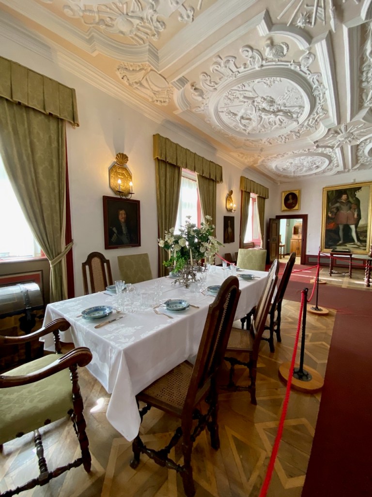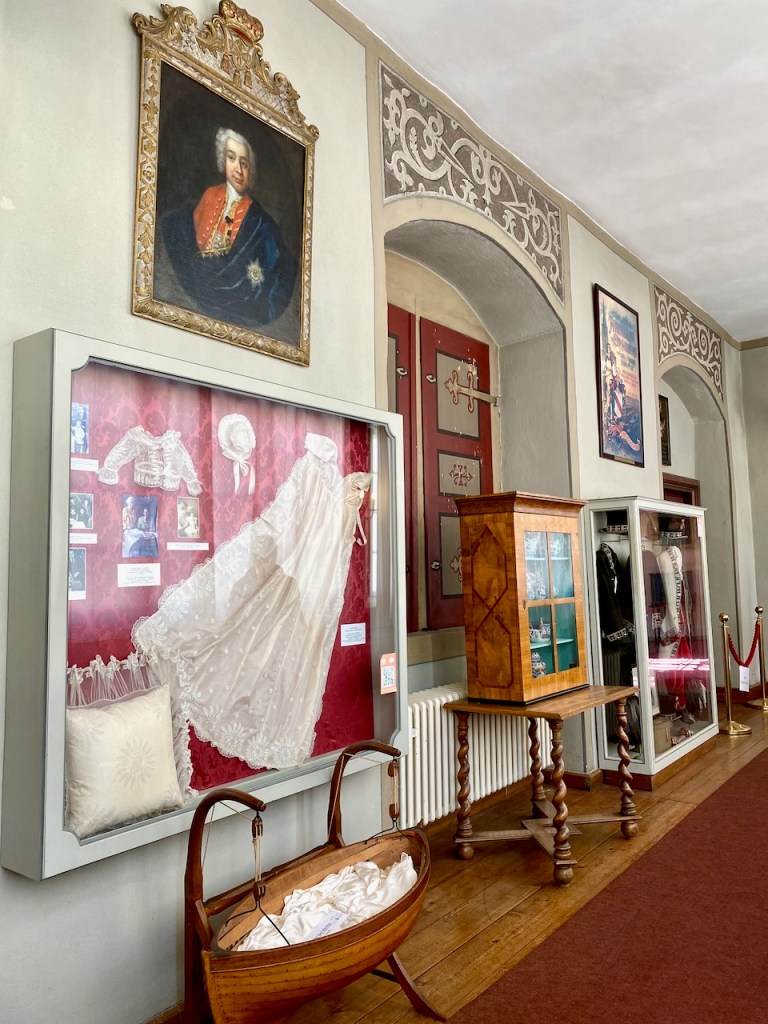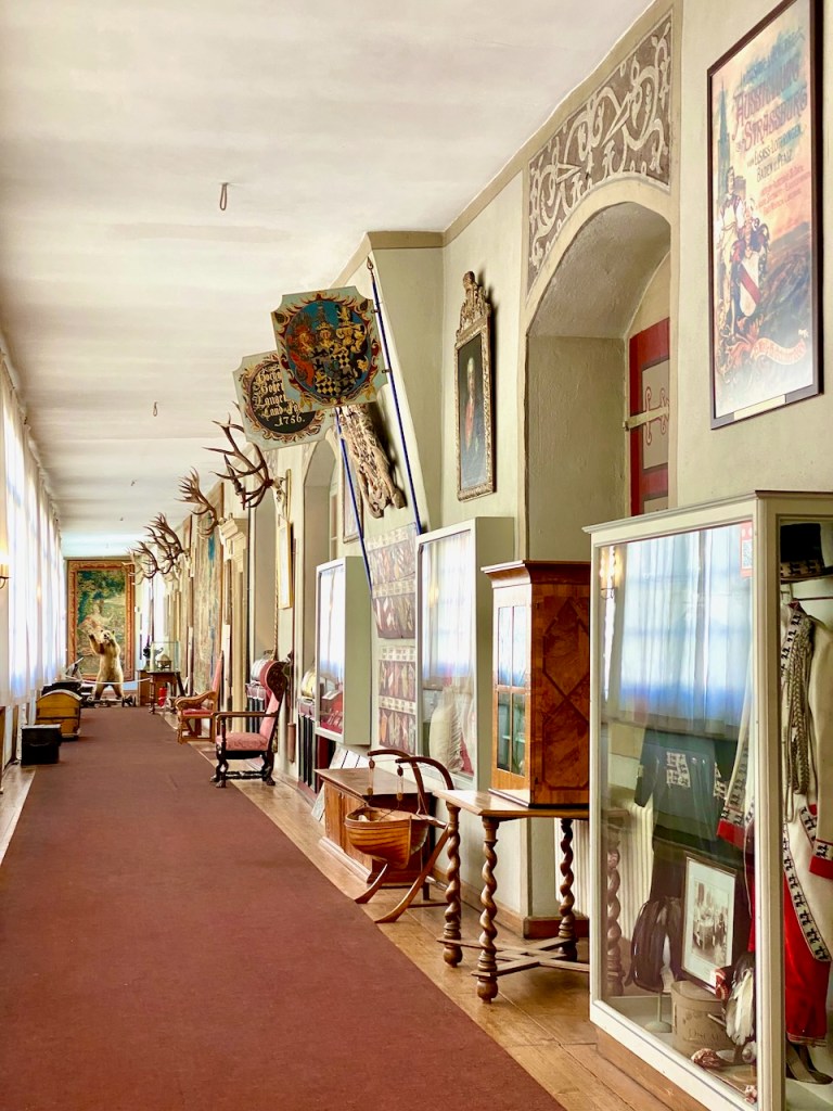 Linnan museossa on seitsemän huonetta, jotka tarjoavat vieraille kokemuksia komeasta elävästä kulttuurista. Esillä on arvokkaita antiikkihuonekaluja, seinävaatteita, kuvia, fajanssia, posliinia sekä kokoelma aseita, panssareita ja metsästyspalkintoja. Kaikki on tosi hienoa ja aivan erityisesti katselimme kattoja.