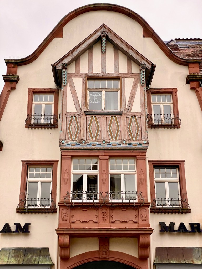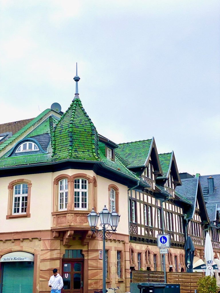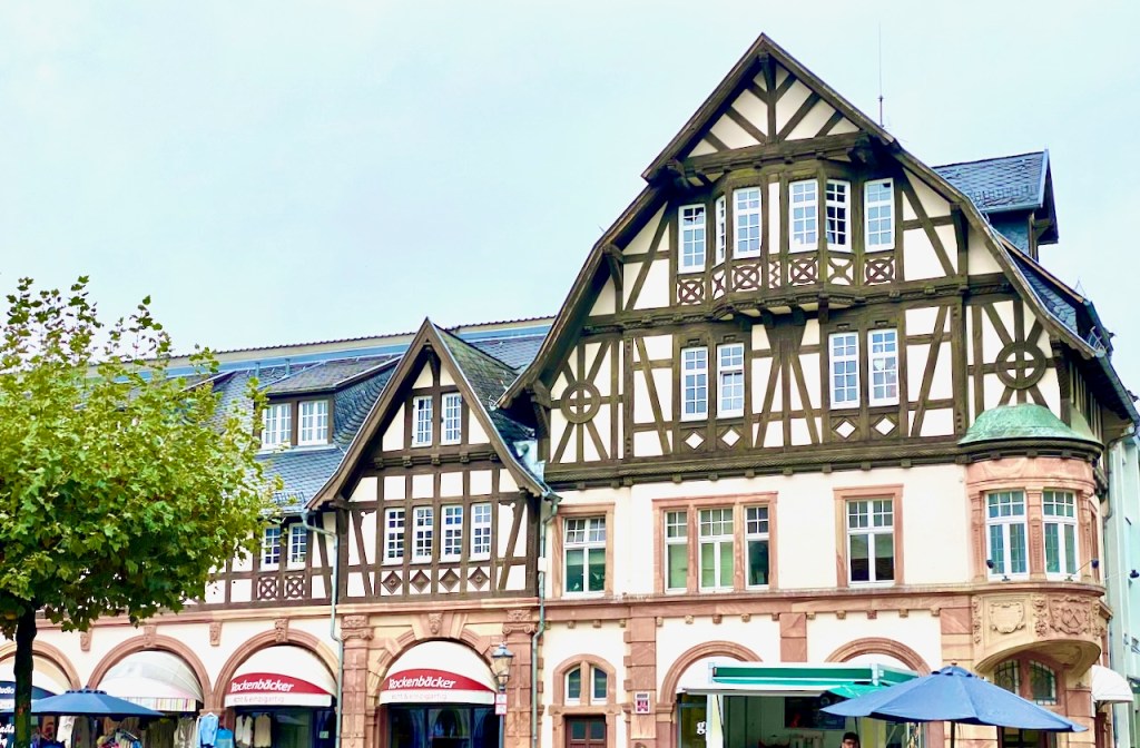 Marktplatz tarjosi taas ristikkotalonäkymiä. Mielenkiintoisia muotoja katoissa ja ikkunoissa.