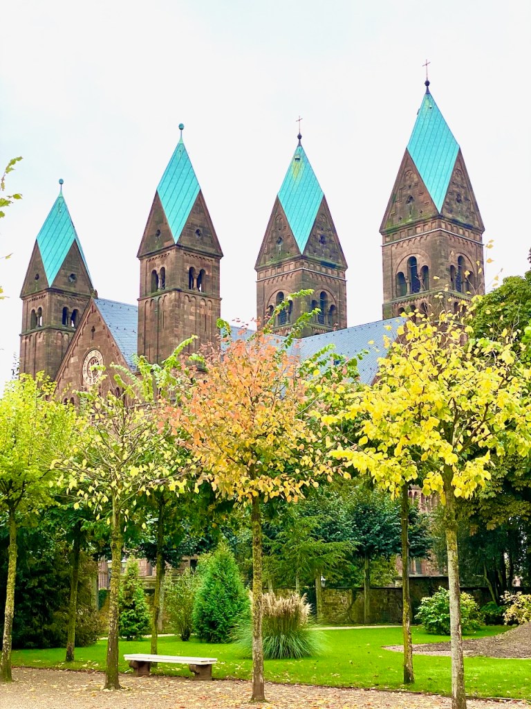 Linnan portista ulos käydessämme vieressä oli komea kirkko, eli Erlösekirche (Lunastajan kirkko) kuuluu Saksan protestanttiseen kirkkoon. Vuonna 1908 valmistunut rakennus on ulkonäöltään komea, ja kuten luterilaisissa kirkoissa yleensä, eivät tämänkään kirkon ovet nyt auenneet.