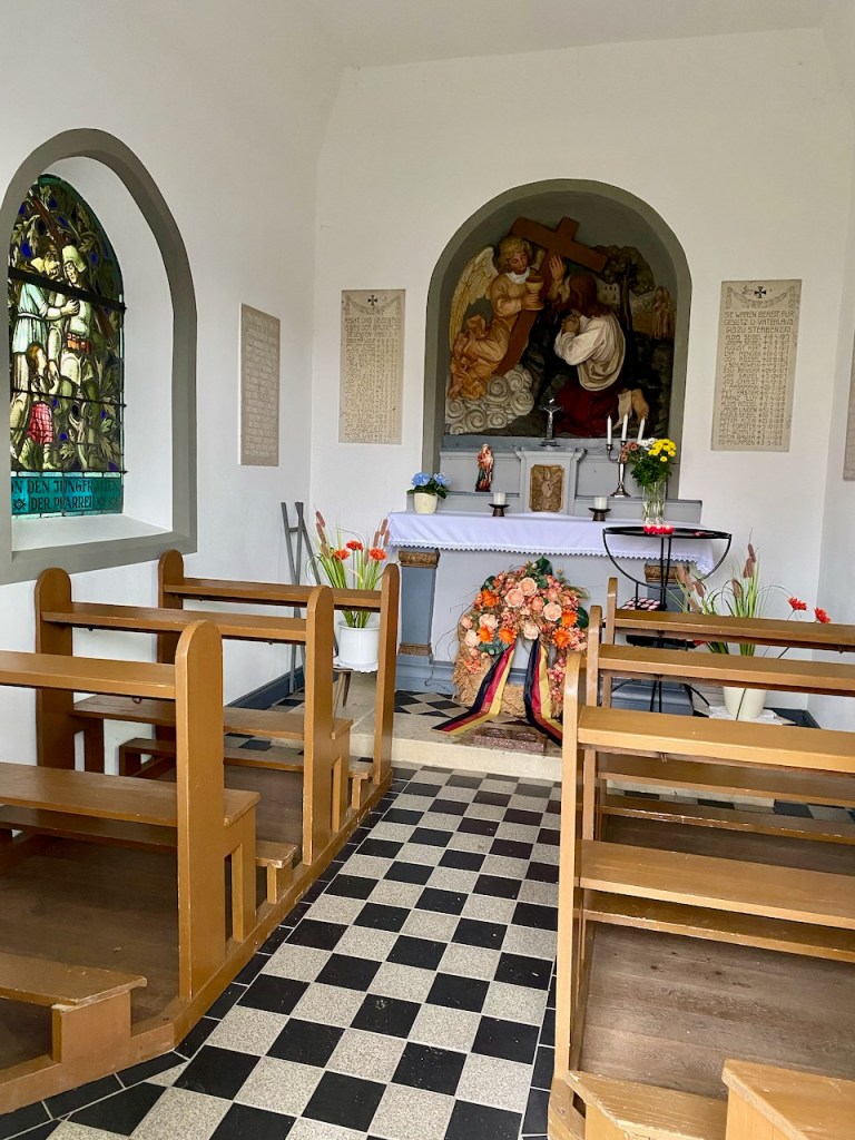 Parkkipaikan ja infon vierellä oli vielä tällainen pieni hautausmaakappeli.