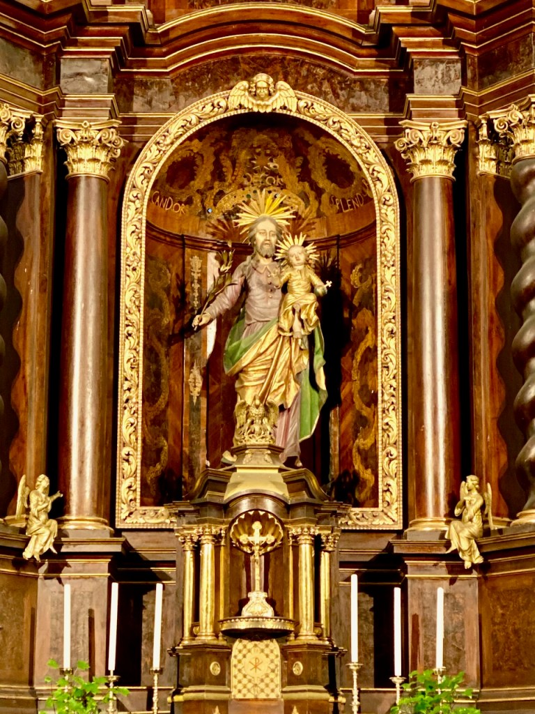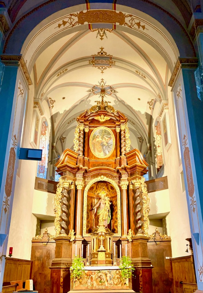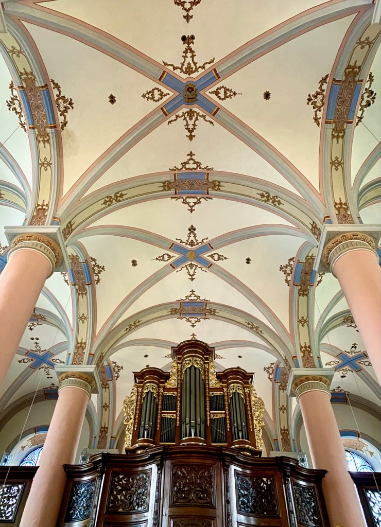 Ylhäällä rinteellä olevan kirkon edestä terassilta oli jo hyvät näkymät joelle. Ja itse kirkko oli jälleen kaunista katsottavaa.
