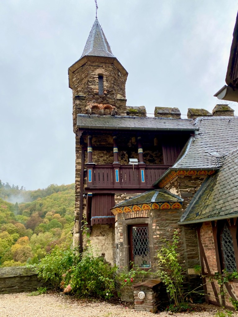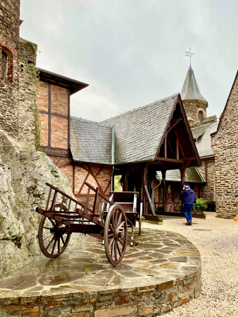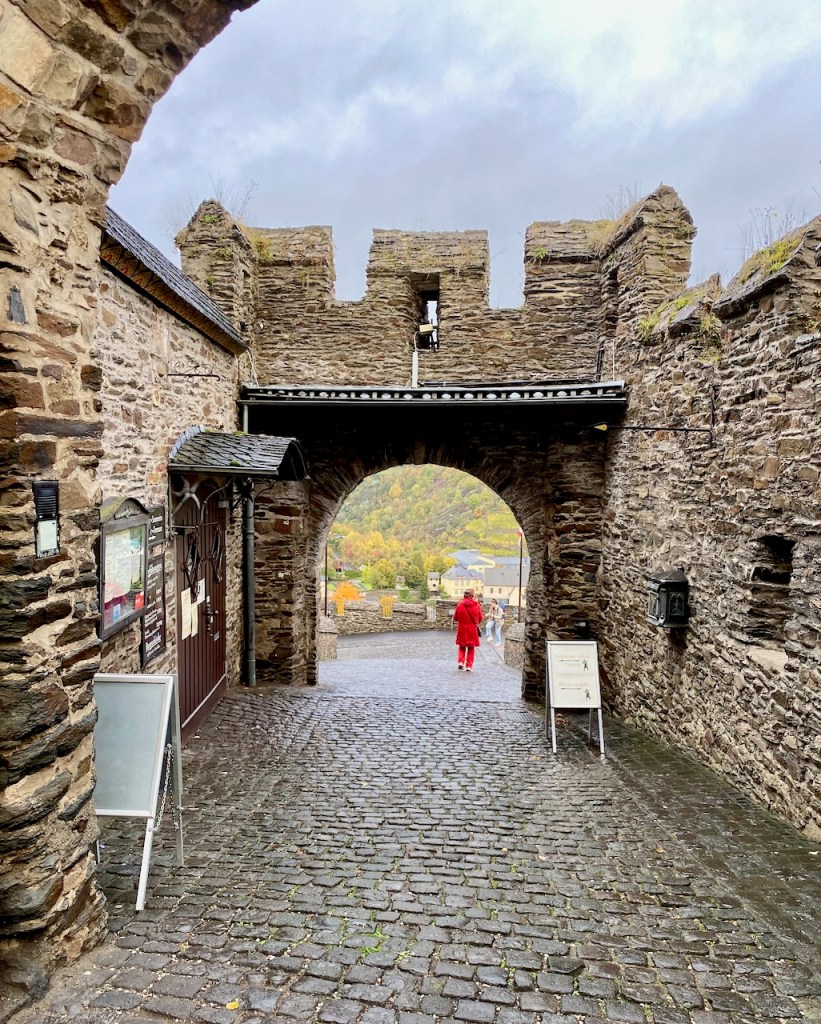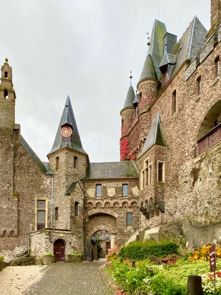 Cochem on suosittu kohde, ja sen rinteellä oleva Reichsburgin linna on yksi asioista, jotka tekevät siitä houkuttelevan. Linnaan voi kävellä, jos ylämäki ei haittaa, sinne pääsee turistibussilla keskustasta ja viikonloppuna sinne voi myös ajaa omalla autolla. Linnaan pääsee sisälle opastetulla kierroksella, mutta jos ei halua osallistua sellaiseen, jo näköalat ja ravintolaterassi tarjoavat mukavan kokemuksen. Me ajoimme ylös ja osallistuimme kierrokseen. Meille sopi tämä hyvin.
