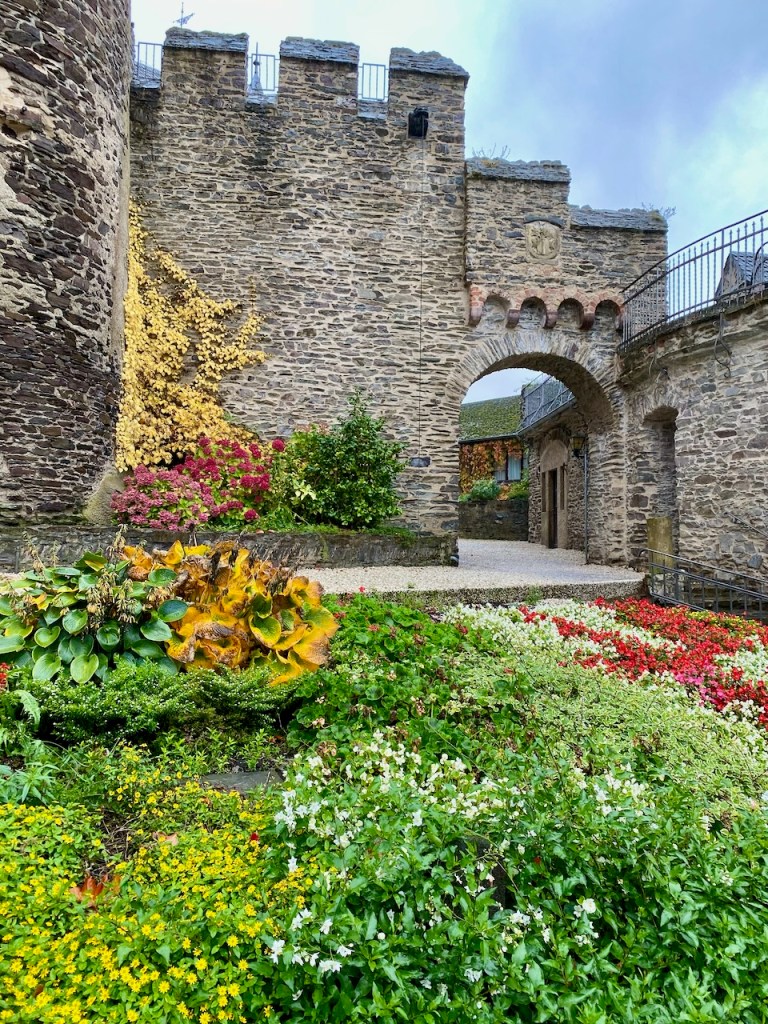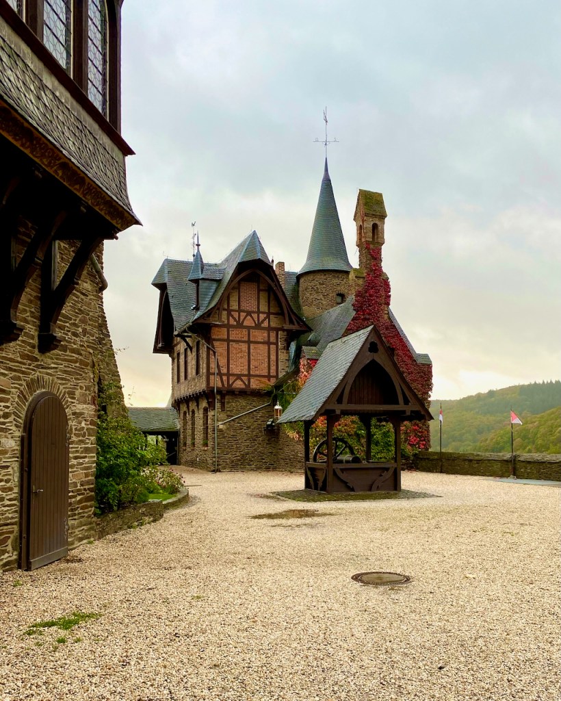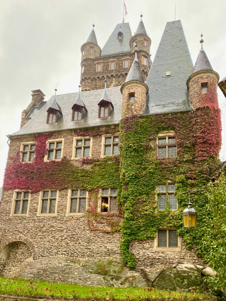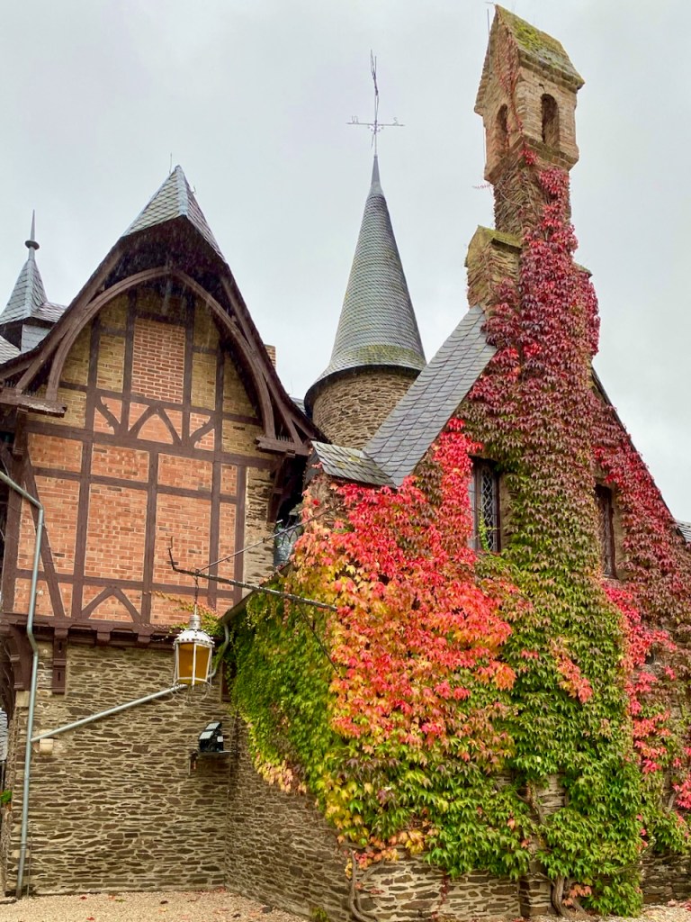Cochem on suosittu kohde, ja sen rinteellä oleva Reichsburgin linna on yksi asioista, jotka tekevät siitä houkuttelevan. Linnaan voi kävellä, jos ylämäki ei haittaa, sinne pääsee turistibussilla keskustasta ja viikonloppuna sinne voi myös ajaa omalla autolla. Linnaan pääsee sisälle opastetulla kierroksella, mutta jos ei halua osallistua sellaiseen, jo näköalat ja ravintolaterassi tarjoavat mukavan kokemuksen. Me ajoimme ylös ja osallistuimme kierrokseen. Meille sopi tämä hyvin.