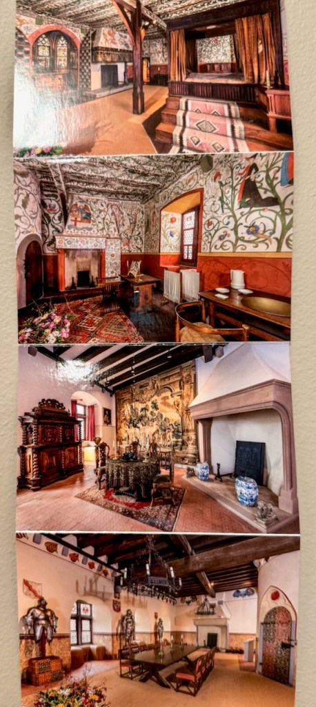 Nyt siellä on kuvauskielto. Matkamuistomyymälässä on myytävänä lasia ja keramiikkaa, joka kuvaa linnaa ja tietysti paljon kirjoja, postikortteja ja muuta materiaalia linnasta ja sen sisätiloistakin. Meidän seinällä on nyt tällainen kuvaketju, josta voi ainakin aavistella, kuinka hienosta kierroksesta sisällä on kysymys. Ja pitäähän muistot olla.