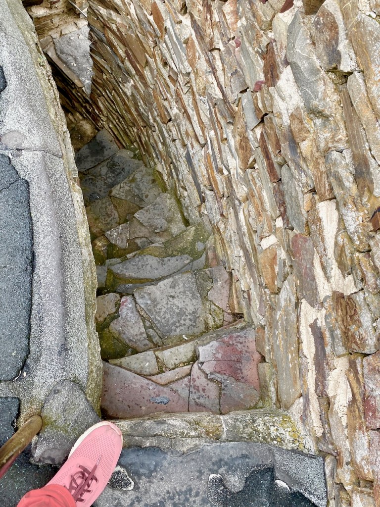 Olin jo kääntymässä takaisin, kun vastaan tuli mies, joka pudisti päätään. ”Ei, ei tästä vielä takaisin alas, tuolla edessä päin on portaat torniin.” (käänsin tämän saksasta itse). Ja mies viittoi eteenpäin. Ok, lähdin siis vielä eteenpäin.