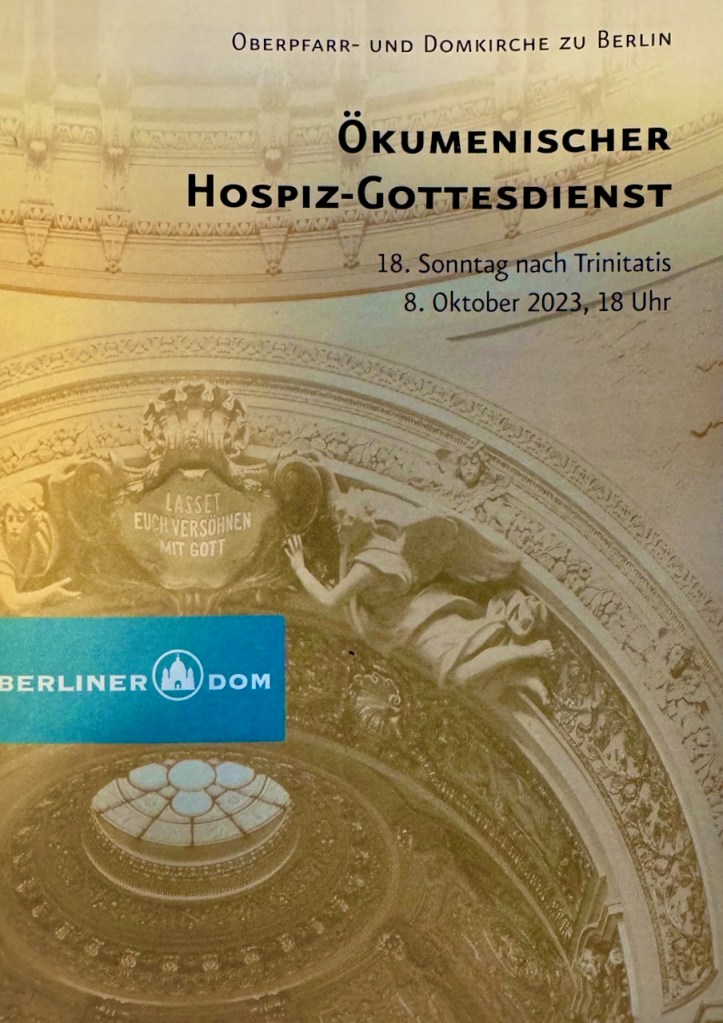 Nyt meidät yllätti ohjelma: Saattohoitomessu. Emme olleet ikinä kuulleetkaan, että tällaistakin voidaan järjestää. Netistä löytyi tietoa, että muuallakin Saksassa oli samaan aikaan palliatiivisen hoidon ja saattohoidon aiheisiin liittyviä tapahtumia kirkoissa.